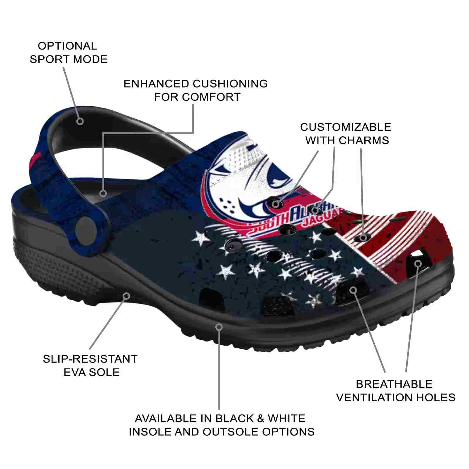 Customized South Alabama Jaguars Star-Spangled Side Pattern ClogTVC1801727