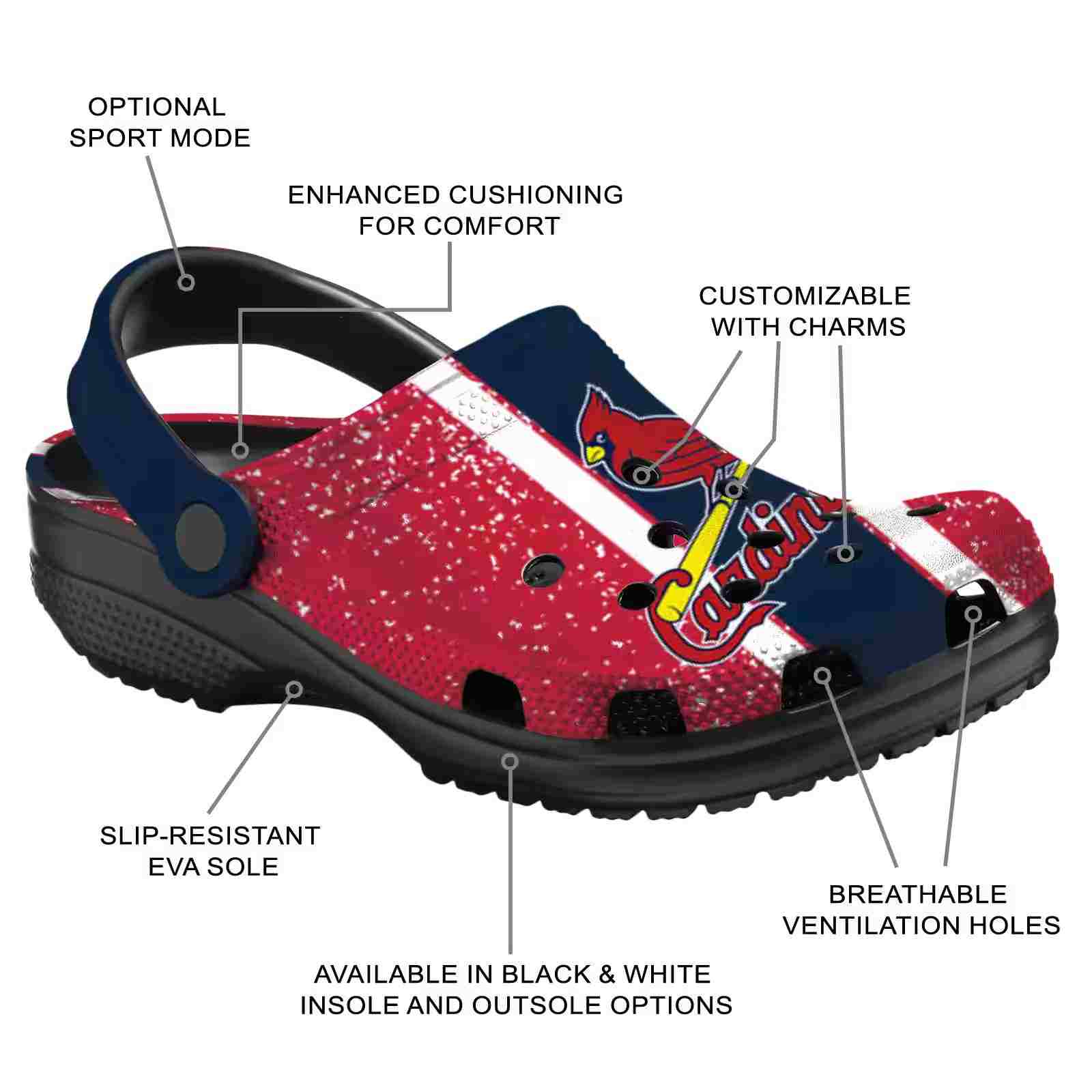 As part of our St. Louis Cardinals Crocs and MLB Crocs collections, these unique Clog are designed to let your love for your favorite shine bright.