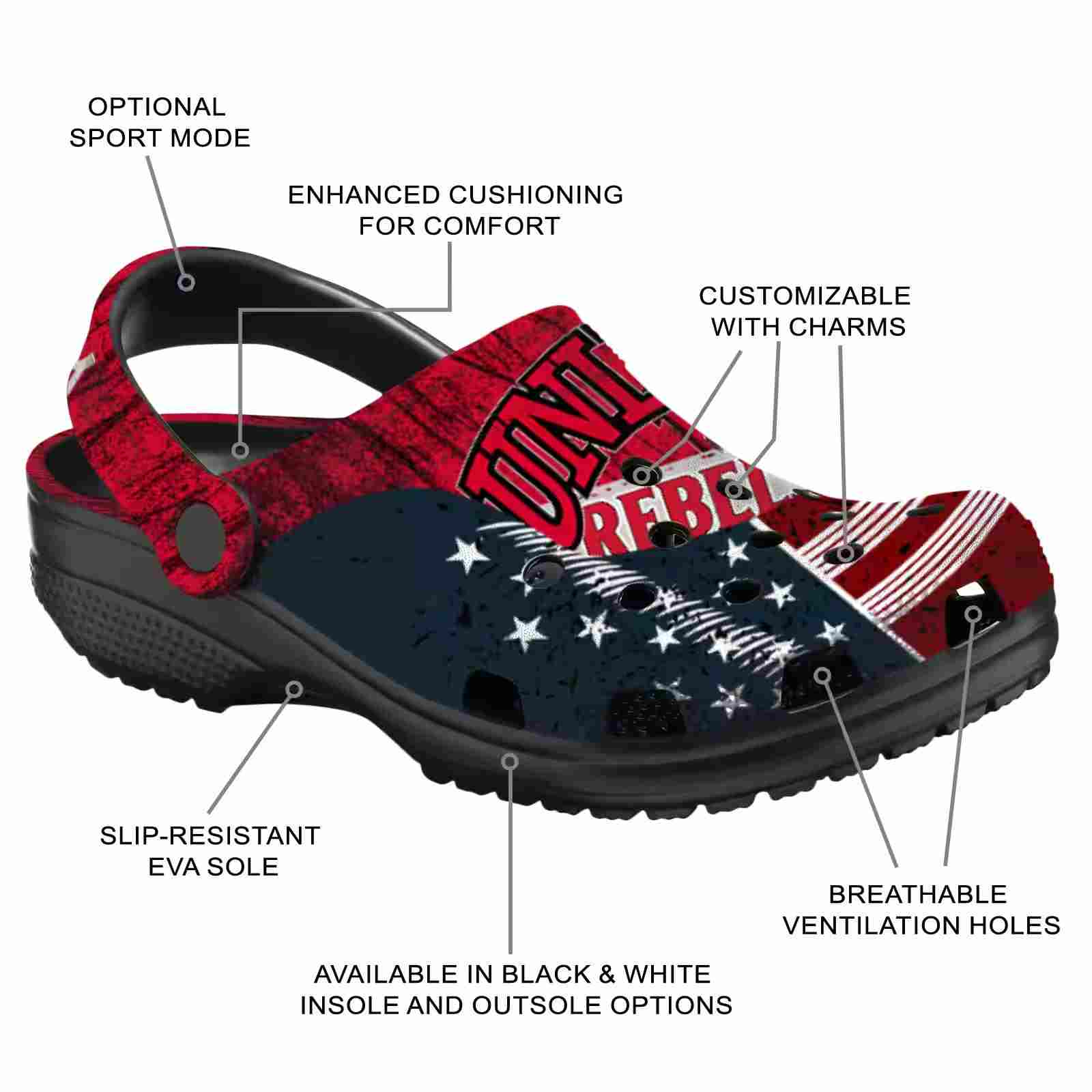 Customized UNLV Rebels Star-Spangled Side Pattern ClogTVC1801745
