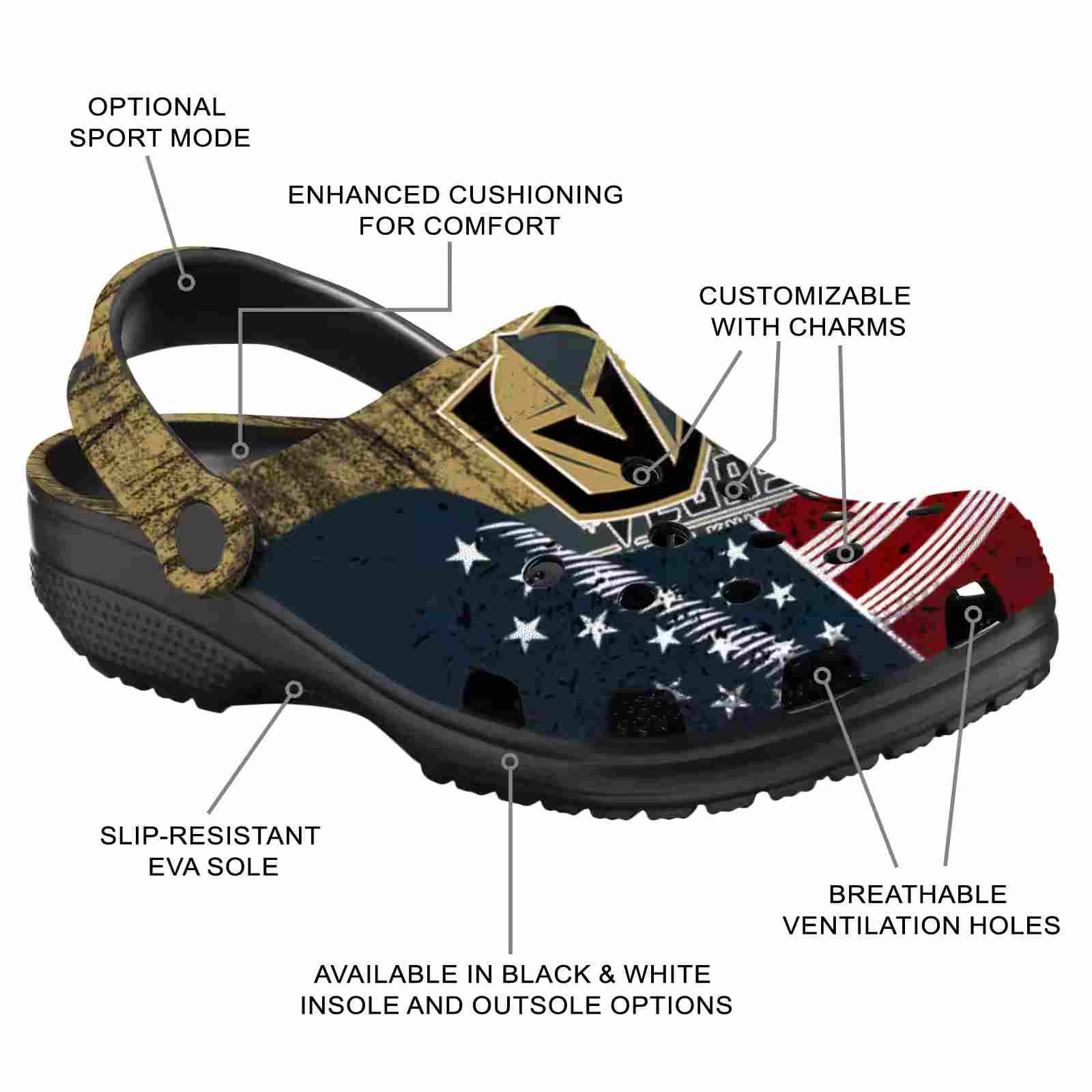 Customized Vegas Golden Knights Star-Spangled Side Pattern ClogTVC1801861