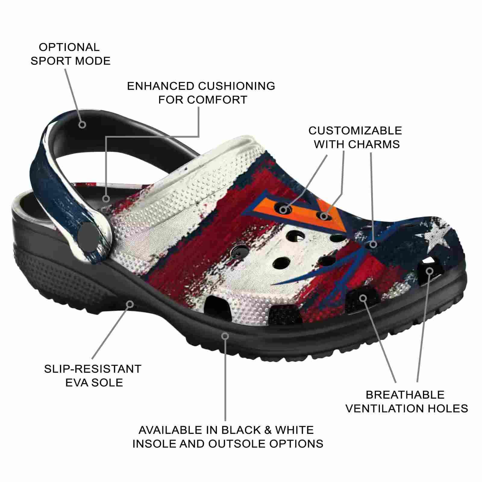 Customized Virginia Cavaliers Patriotic Stripes ClogTVC1801774