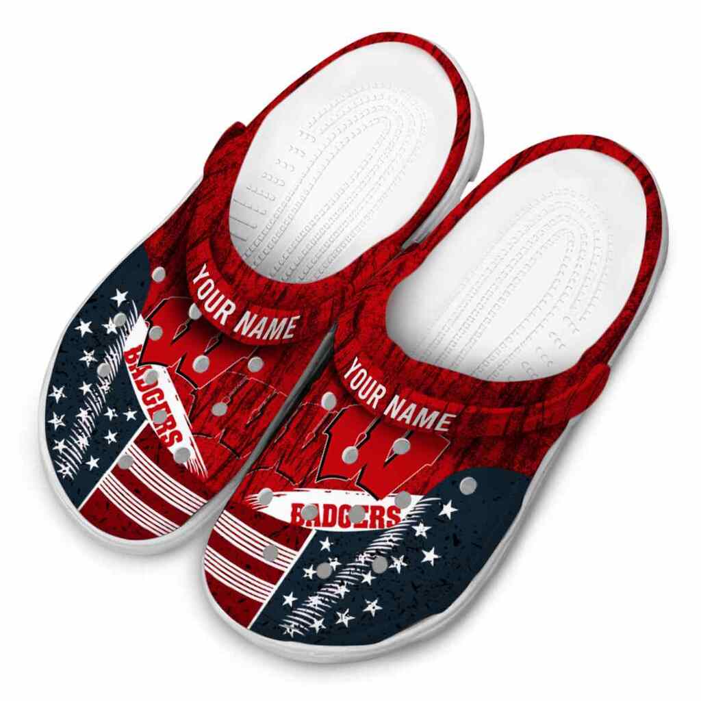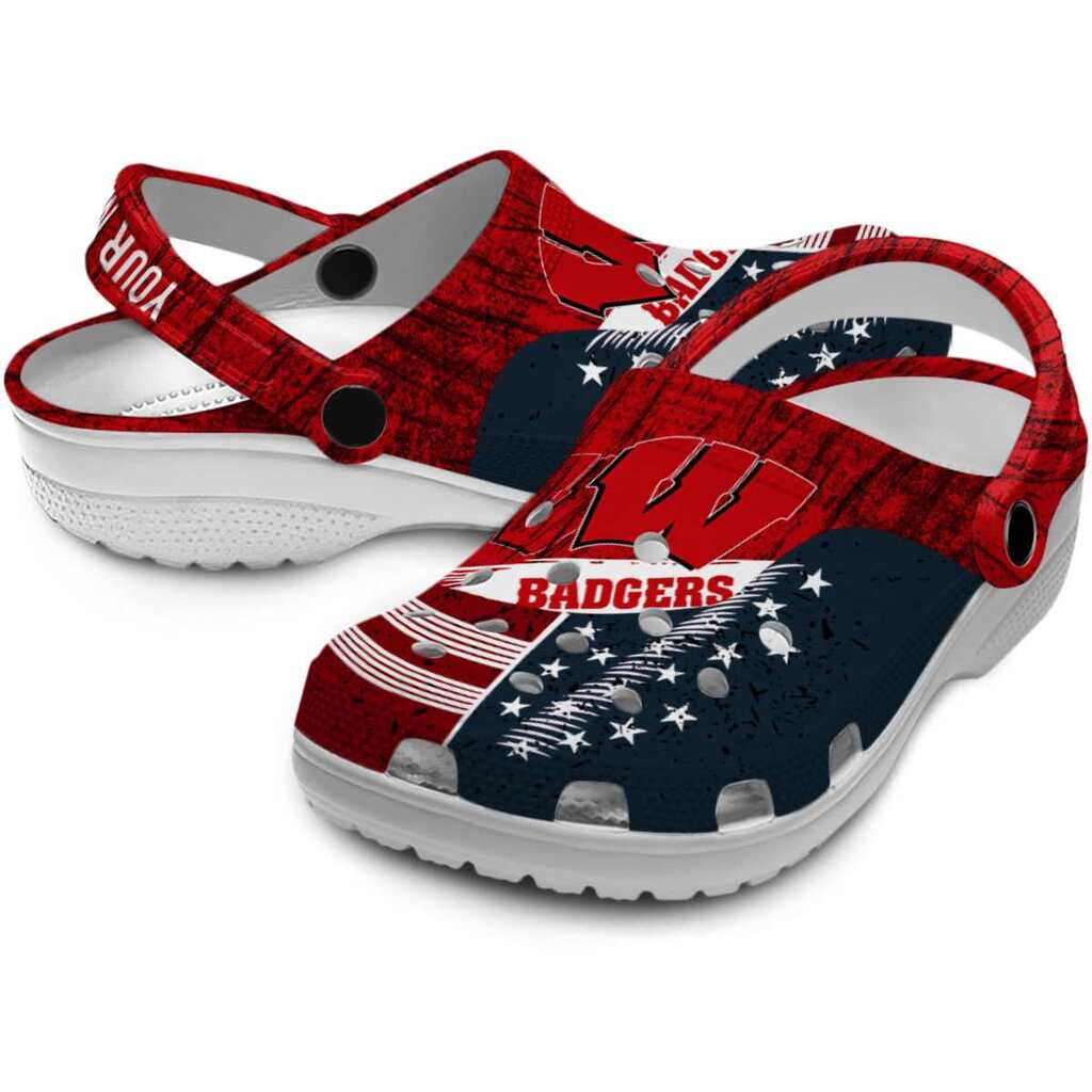 Customized Wisconsin Badgers Star-Spangled Side Pattern ClogTVC180173