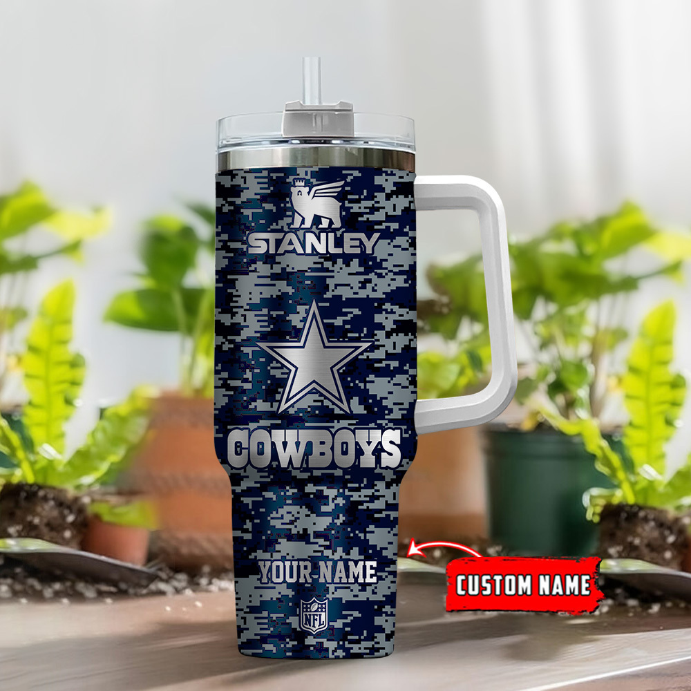 Dallas Cowboys NFL Camouflage Silver Logo Custom Stanley Cup 40 oz 30 oz Tumbler With HandleTVC2301111