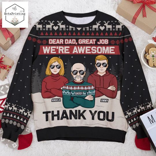Be the first to review “Dear Dad, Great Job, We’re Awesome Thank You Custom Ugly Christmas Sweater” Cancel reply