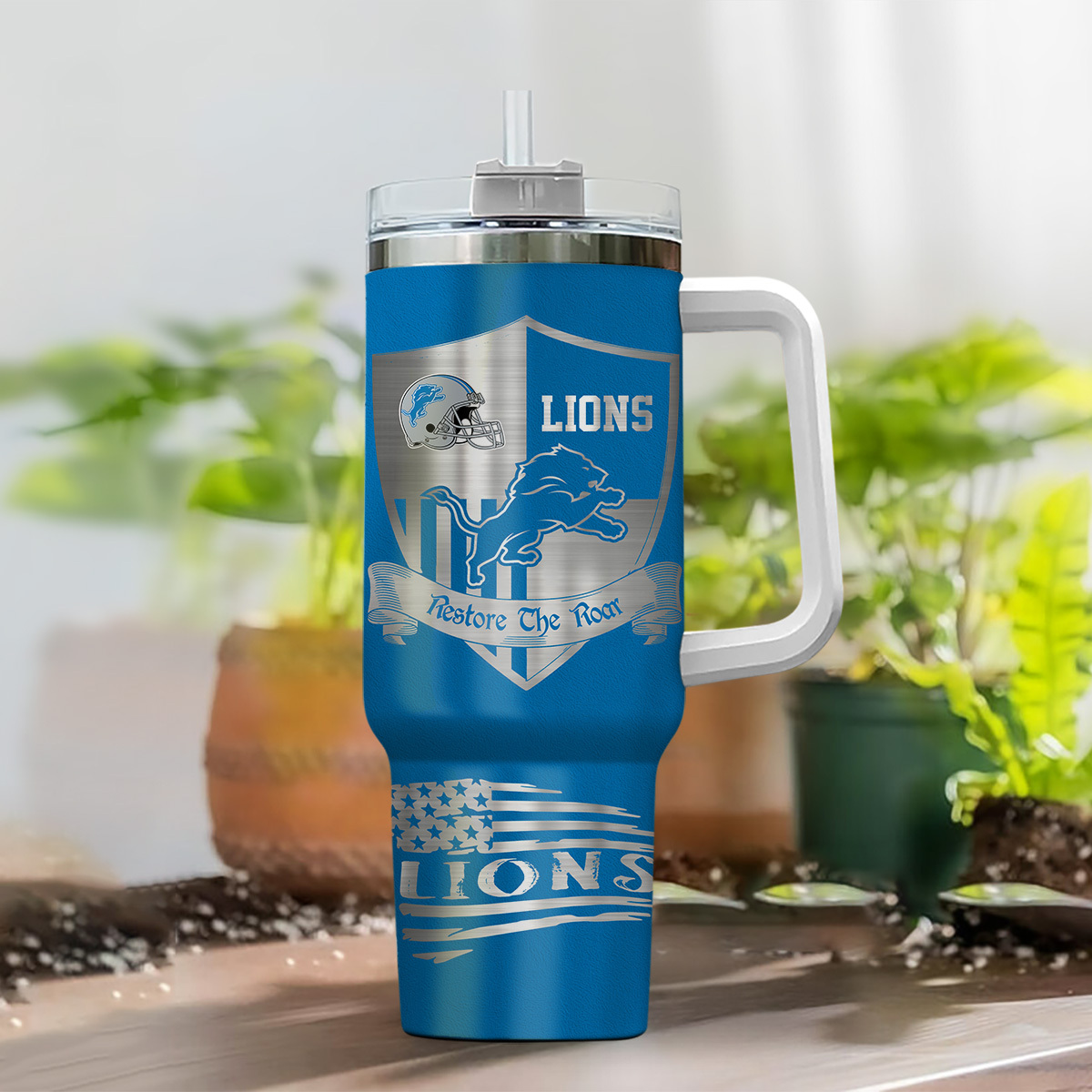 Detroit Lions NFL Silver Logo Custom Stanley Cup 40 oz 30 oz Tumbler With HandleTVC2301106
