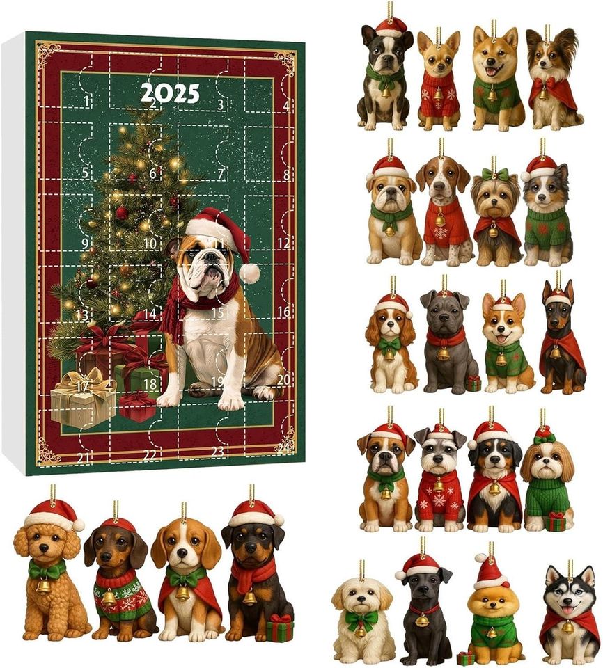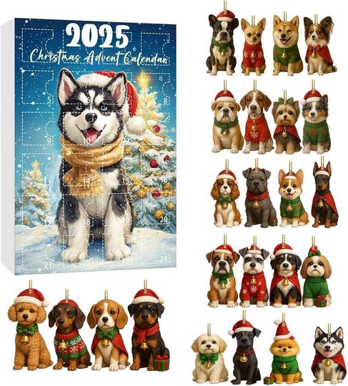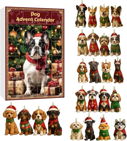 Dog Advent Calendar 2025 for Dog Lovers Acrylic Blind Box Ornaments, Xmas Countdown Box, Cute Holiday Decor & Gift