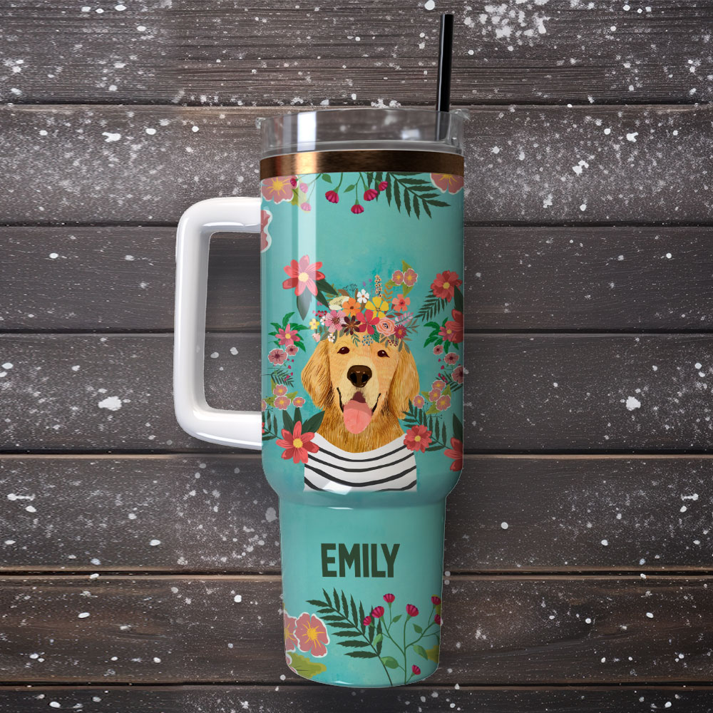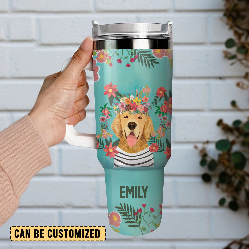 Dog and Flowers Custom Stanley Cup 40 oz 30 oz Tumbler With HandleTVC2301251
