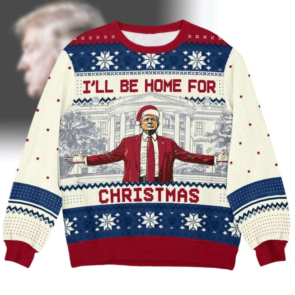 Donald Trump Ugly Xmas Sweater, I’ll Be Home For Christmas Trump Shirt, Make Xmas Great Again Sweatshirt