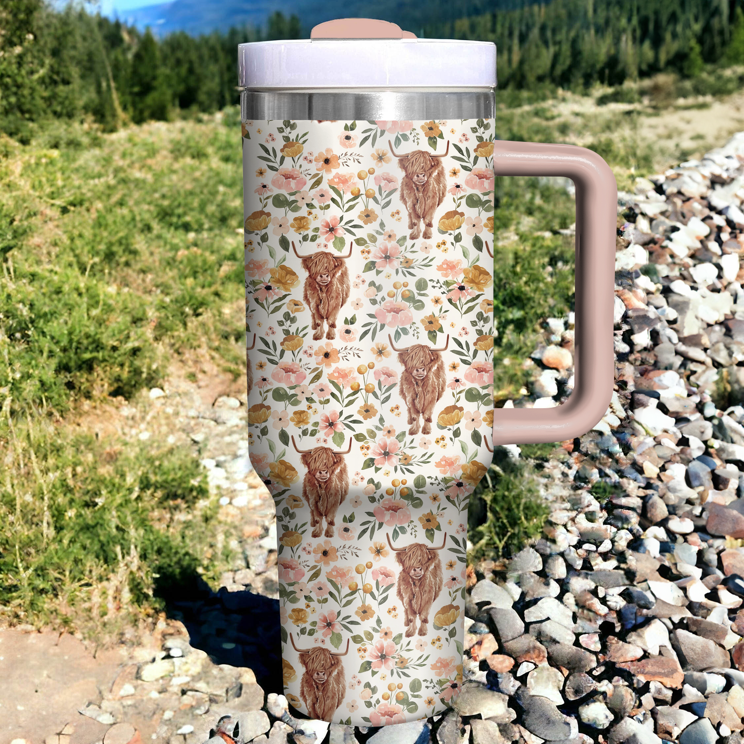 Floral Highland Cow Custom Stanley Cup 40 oz 30 oz Tumbler With HandleTVC2301730