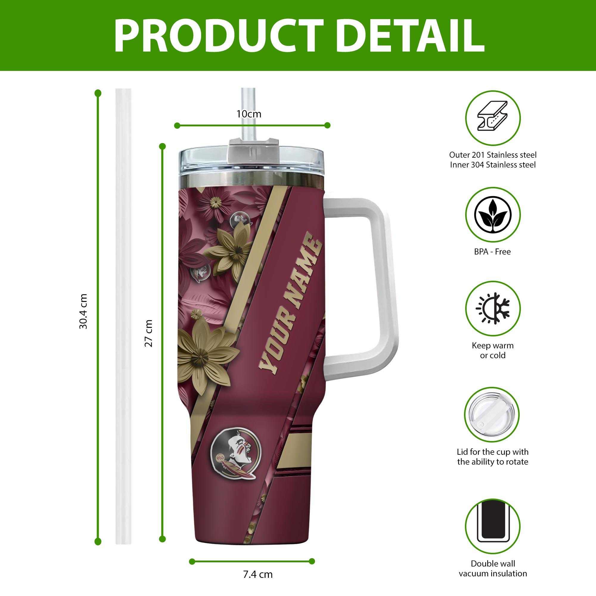 Florida State Seminoles NCAA Custom Stanley Cup 40 oz 30 oz Tumbler With HandleTVC230105