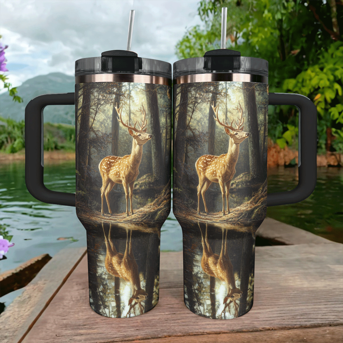 Forest Serenity And Deer Custom Stanley Cup 40 oz 30 oz Tumbler With HandleTVC2301293