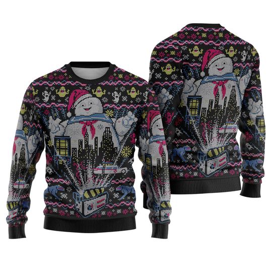 Ghostbusters Christmas Ugly Sweater, Stay Puft Marshmallow Man Christmas Sweater