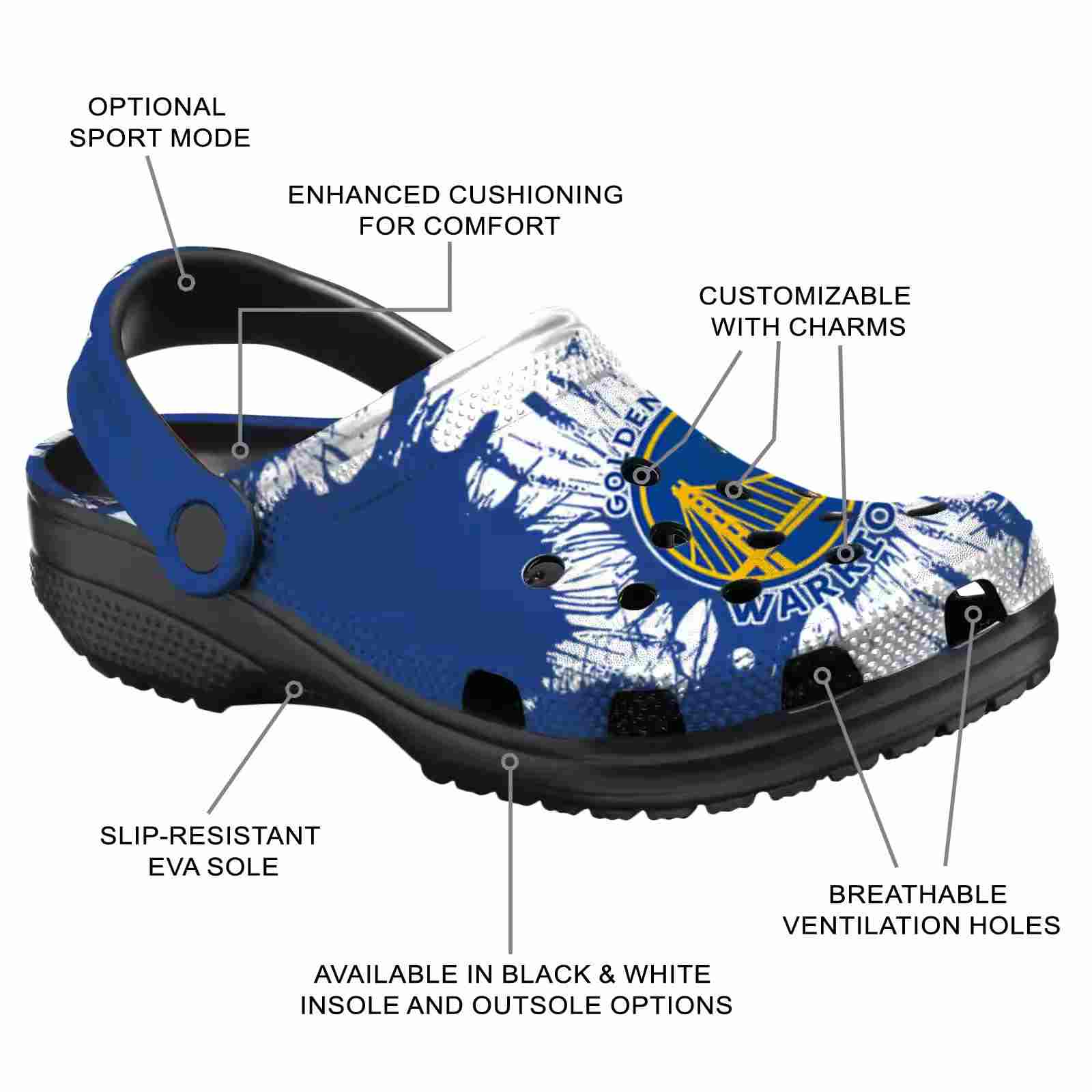 As part of our Golden State Warriors Crocs and NBA Crocs collections, these unique Clog are designed to let your love for your favorite shine bright.