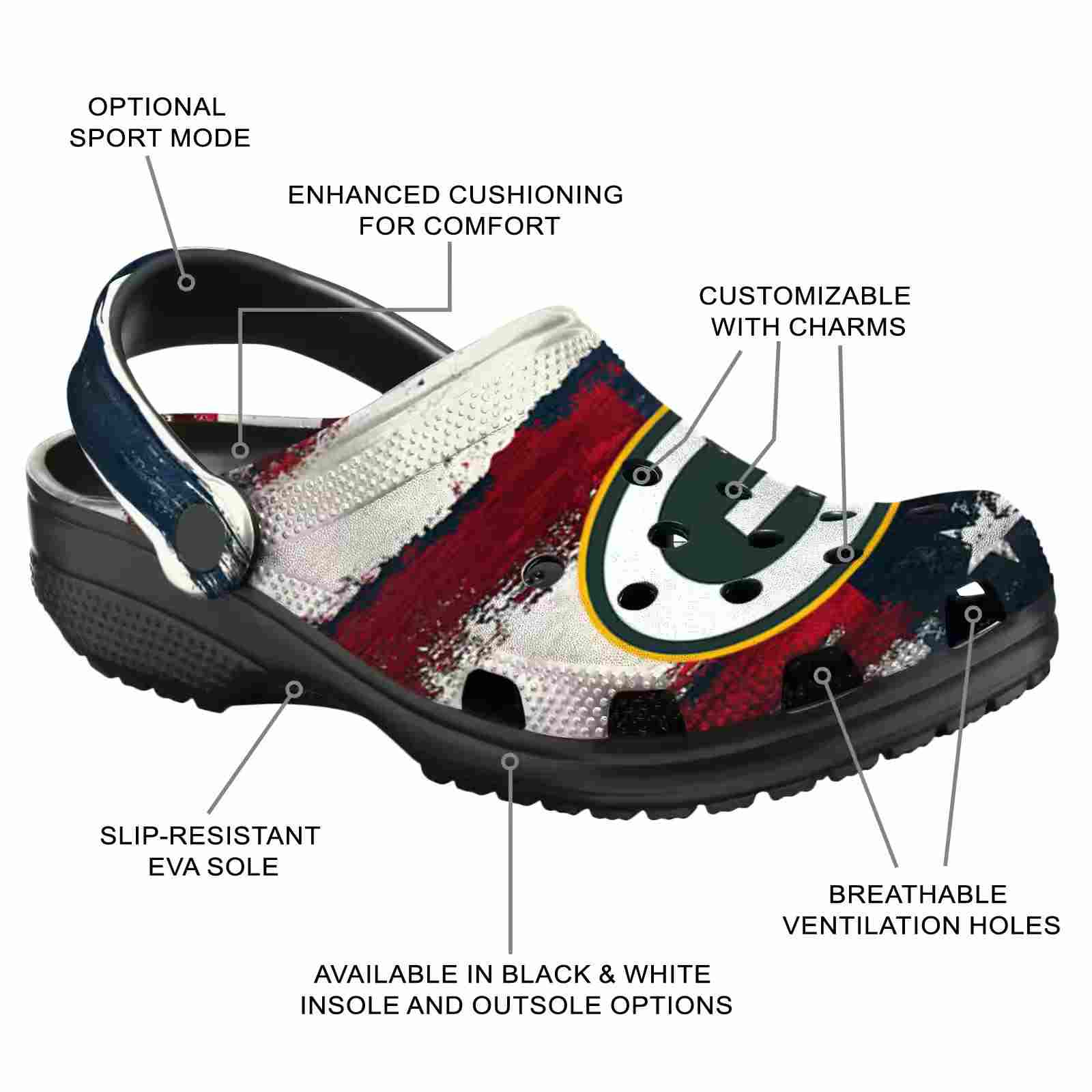 As part of our Green Bay Packers Crocs and NFL Crocs collections, these unique Clog are designed to let your love for your favorite shine bright.