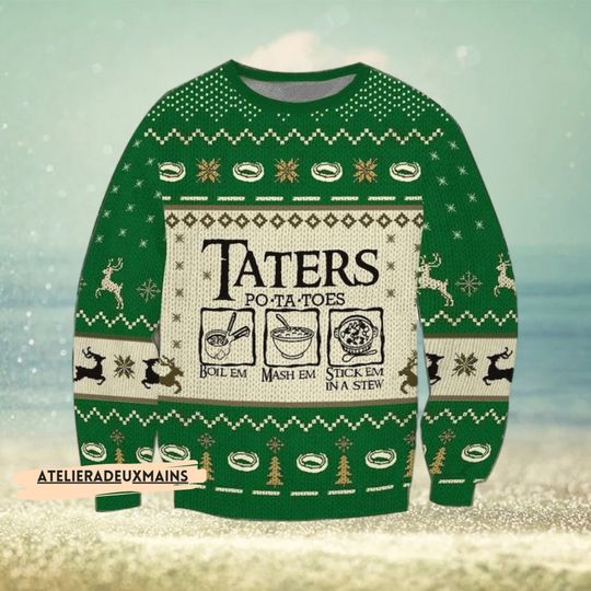 Be the first to review “Green Taters Potatoes Christmas Sweater, Pine Tree And Reindeer Xmas Sweater” Cancel reply