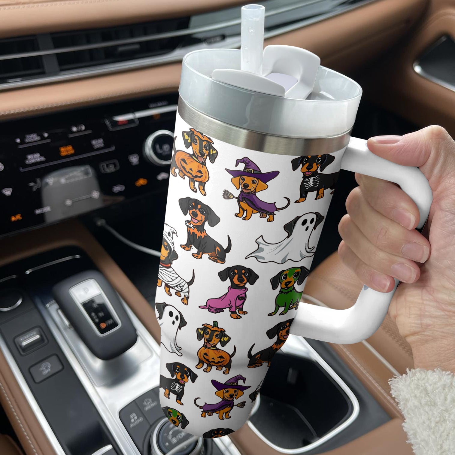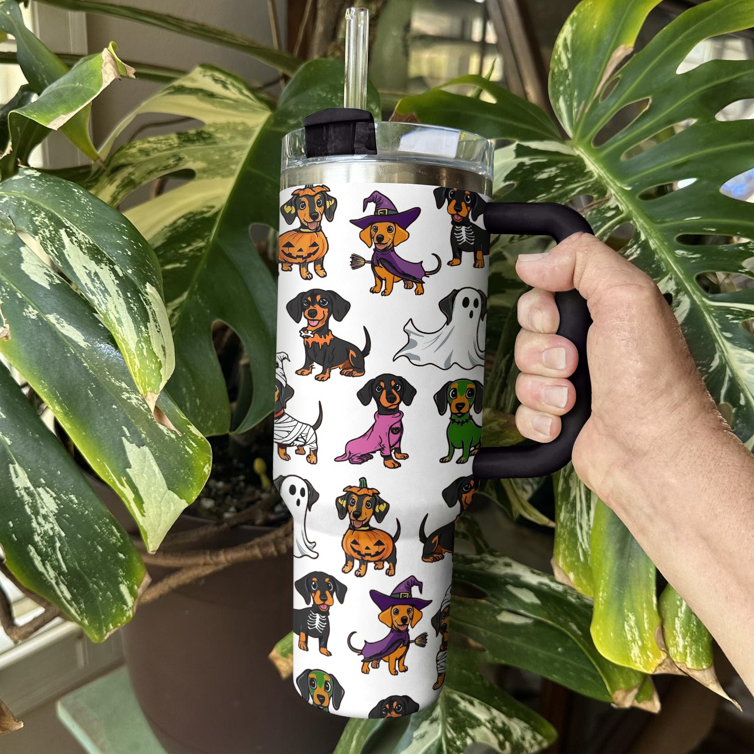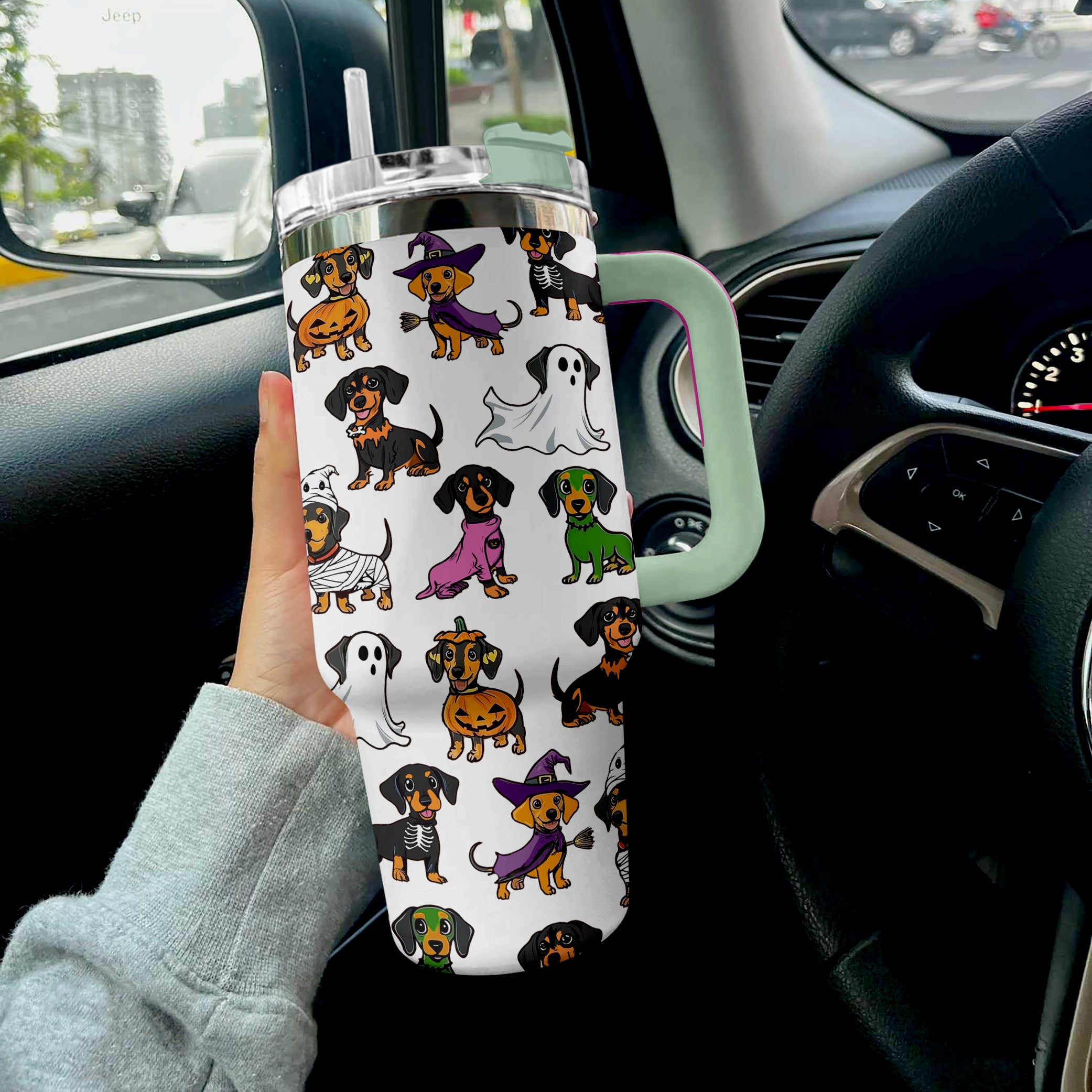 Halloween Dachshund White Custom Stanley Cup 40 oz 30 oz Tumbler With HandleTVC2301674