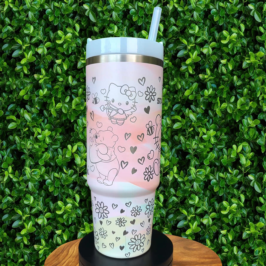 Hello Kitty With Winnie The Pooh Cartoon Custom Stanley Cup 40 oz 30 oz Tumbler With HandleTVC2301776