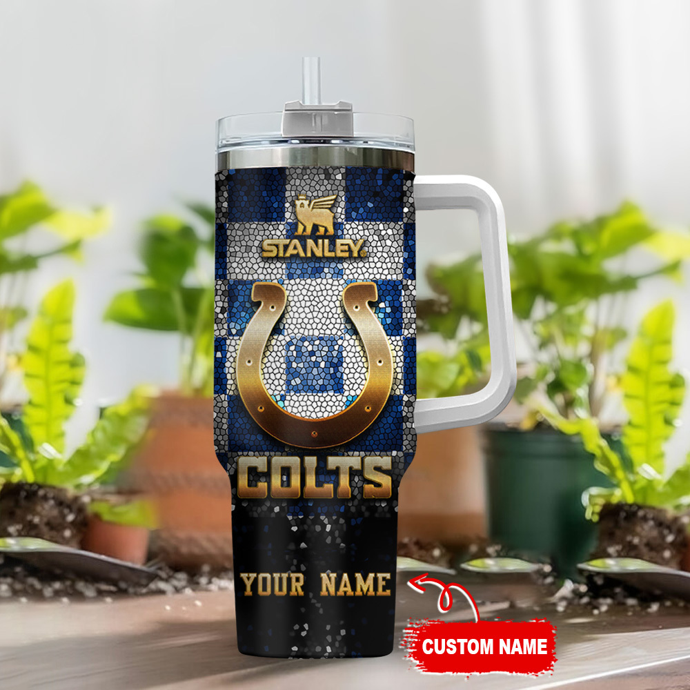 Indianapolis Colts NFL Glitter Golden Logo Custom Stanley Cup 40 oz 30 oz Tumbler With HandleTVC2301117