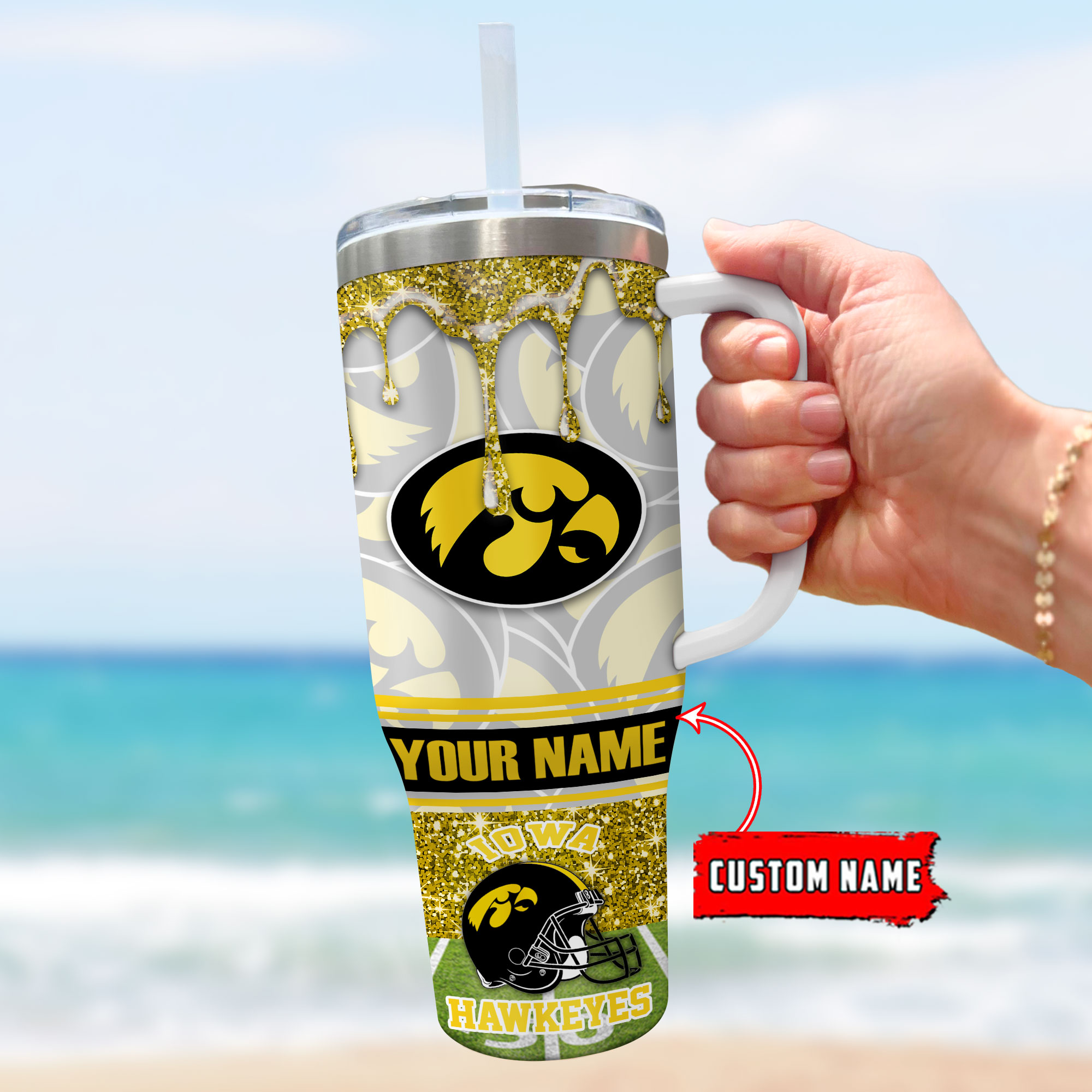 Iowa Hawkeyes NCAA Glitter Custom Stanley Cup 40 oz 30 oz Tumbler With HandleTVC230116