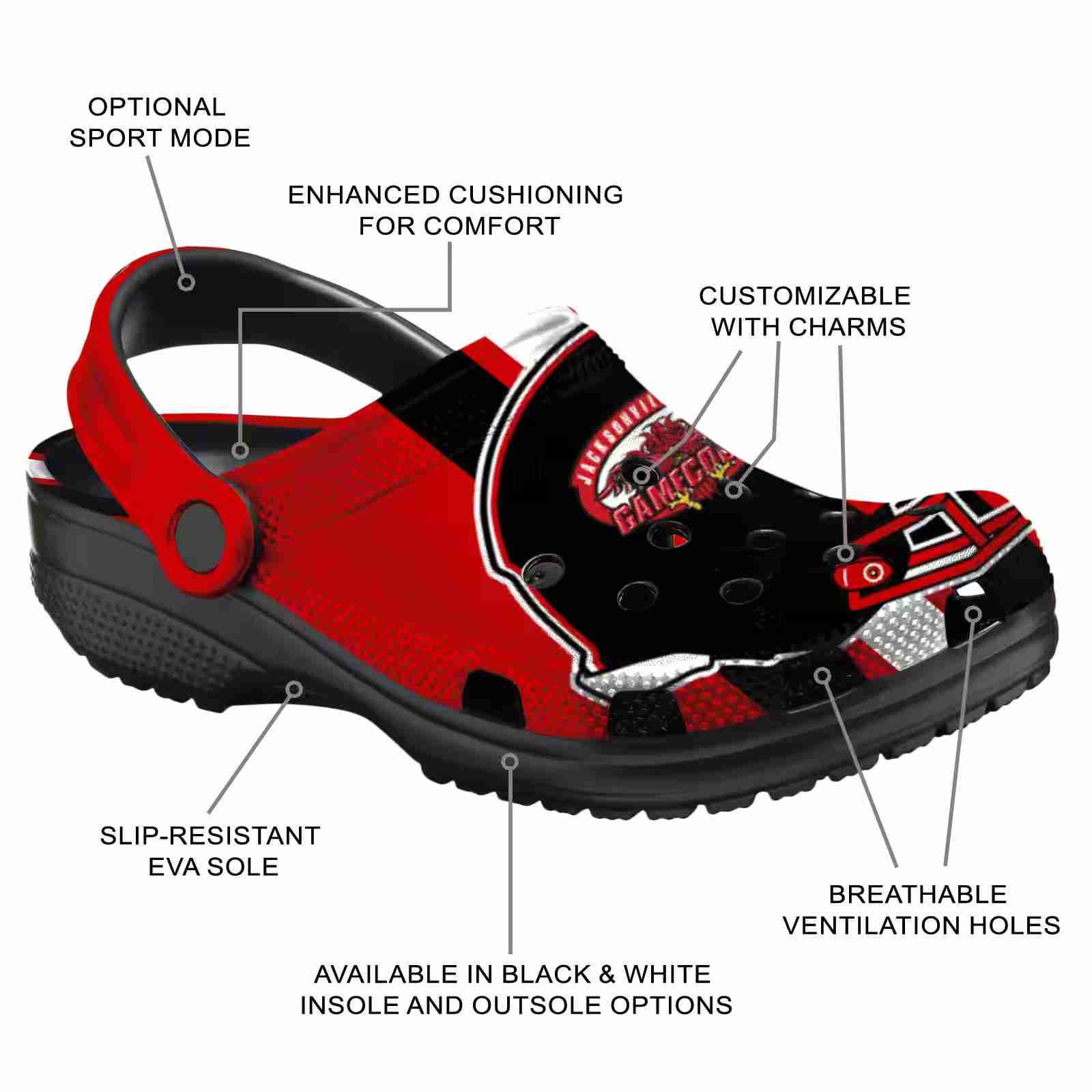 As part of our Jacksonville State Gamecocks Crocs and NCAA Crocs collections, these unique Clog are designed to let your love for your favorite shine bright.