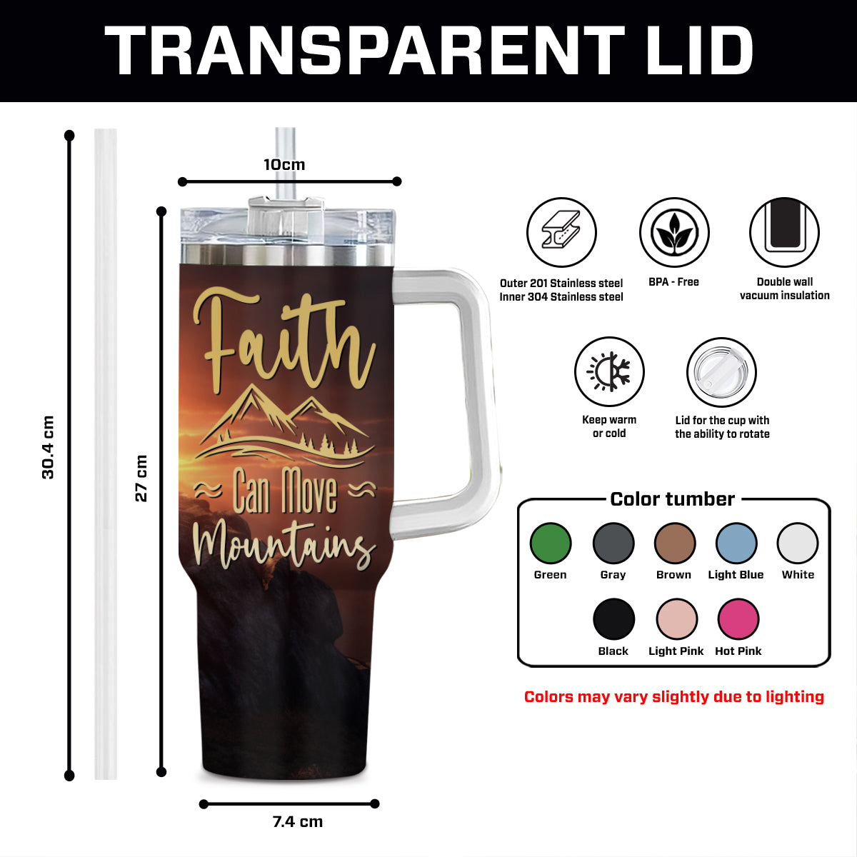 - Size: 40oz capacity with slide lid and clear straw.