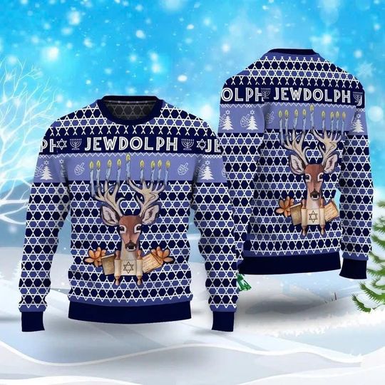 Be the first to review “Jewdolph Hanukkah Ugly Sweater, Funny Jewish Christmas Sweatshirt” Cancel reply