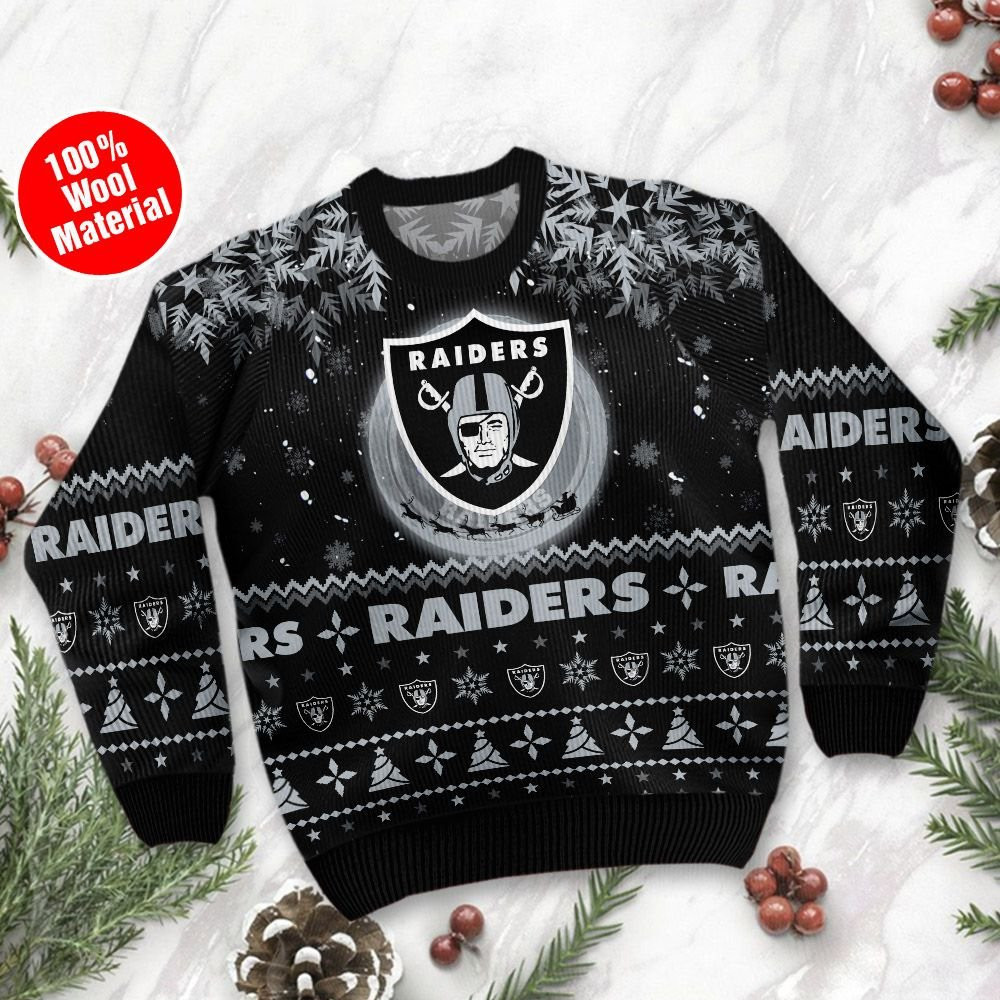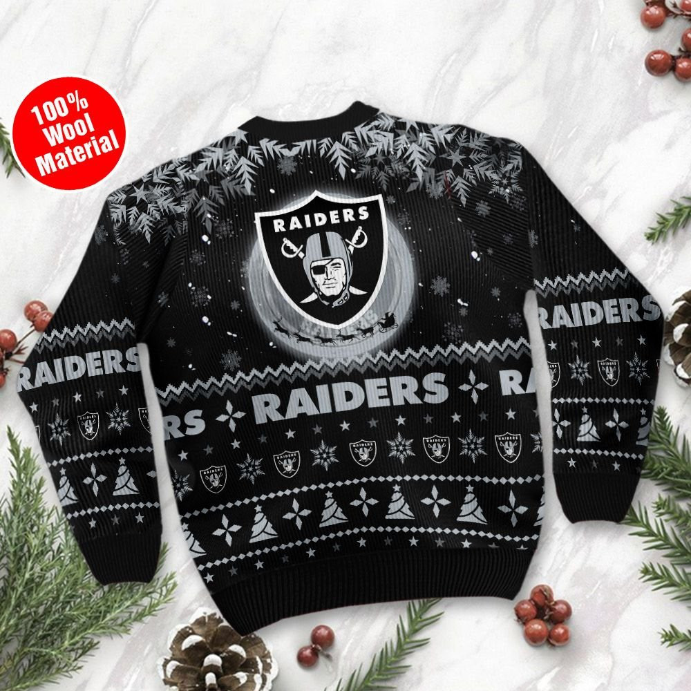 Las Vegas Raiders Santa Claus In The Moon Ugly Christmas Sweater Adult 3D Funny Matching for family