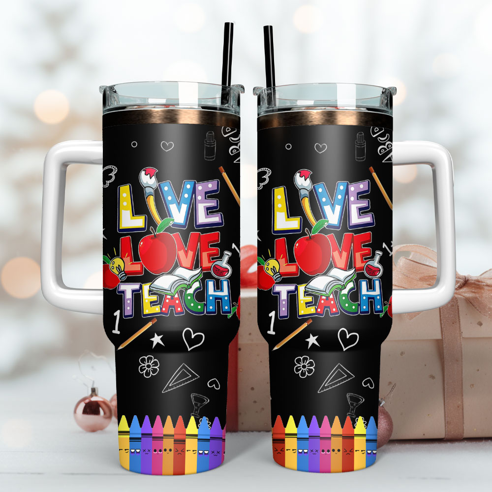 Live Love Teach School Theme Artwok Custom Stanley Cup 40 oz 30 oz Tumbler With HandleTVC2301238