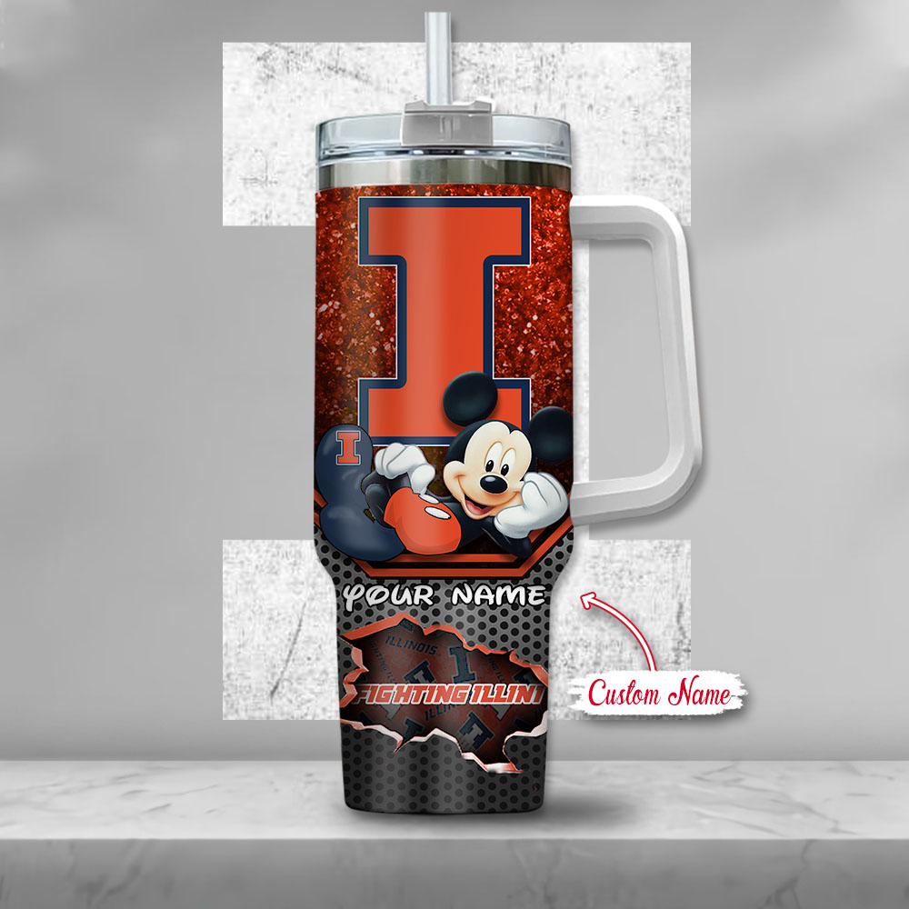 llinois Fighting Illini NCAA Mickey Mouse Custom Stanley Cup 40 oz 30 oz Tumbler With HandleTVC230119