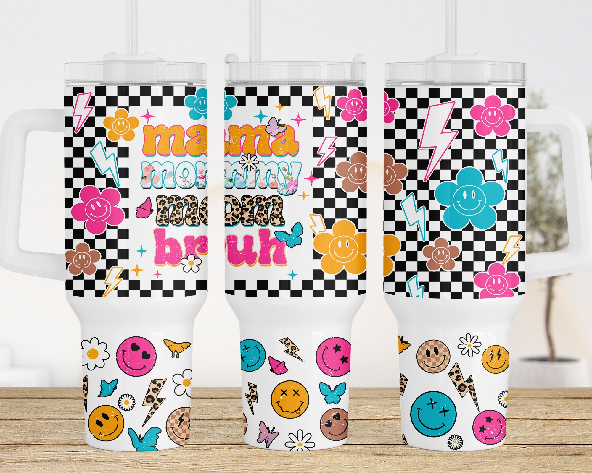 Mama Retro Checkered Smiley Face Custom Stanley Cup 40 oz 30 oz Tumbler With HandleTVC2301960