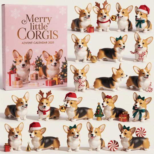 Merry Little Corgis Advent Calendar 2025, Cute Dog Christmas Countdown Box, Corgi Lover Gift