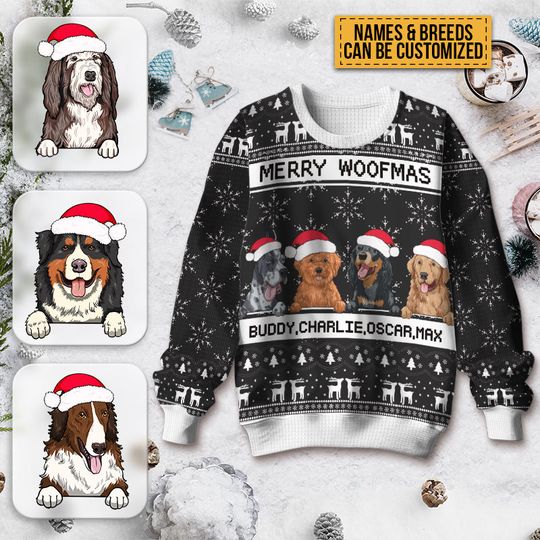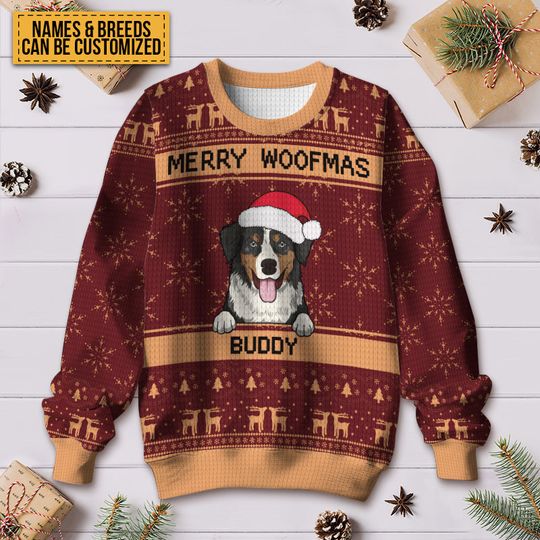 Merry Woofmas – Ugly Sweater – Christmas Gifts For Dog Lovers Personalized Custom Ugly Sweatershirt