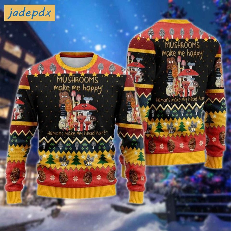 Mushrooms Make Me Happy Ugly Christmas Sweater, Mushrooms Shirt For Xmas, Funny Gift Shirt