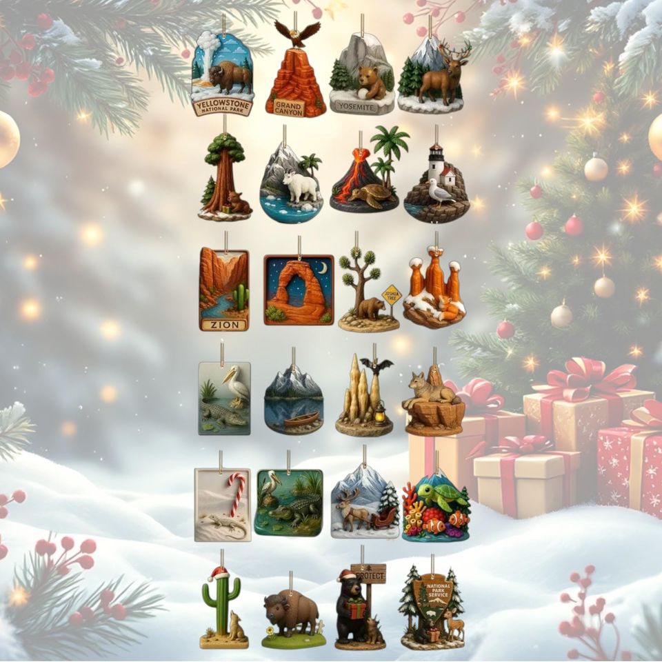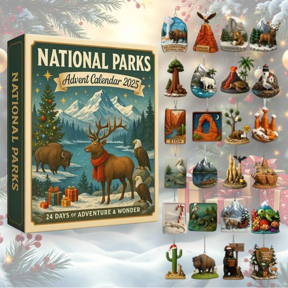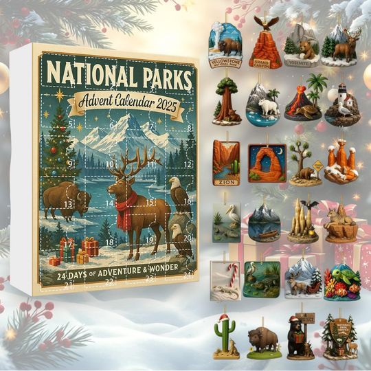 National Parks Advent Calendar 2025, 2D Acrylic Flat Ornaments, Christmas Countdown for Nature Lovers
