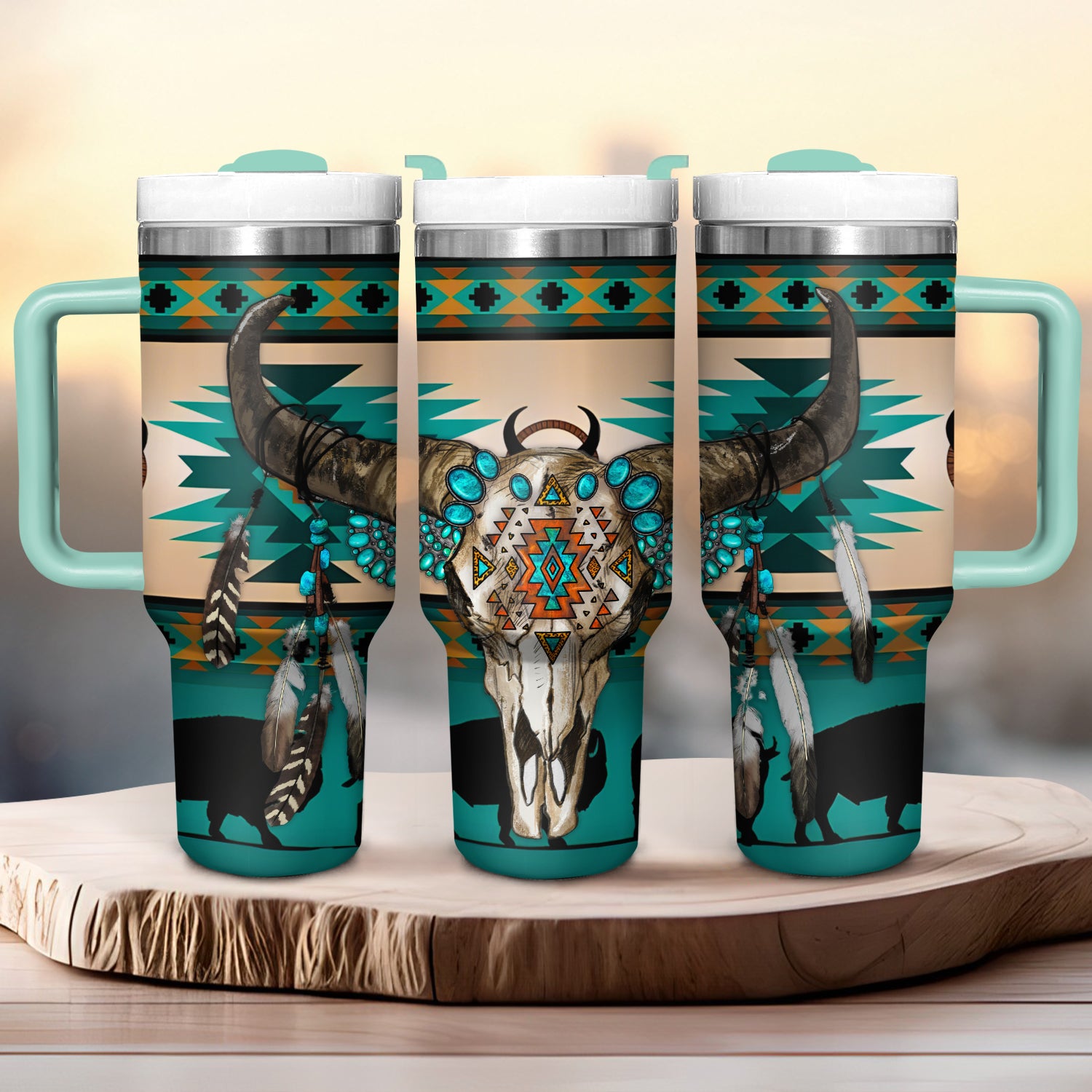 Native Cow Skull Custom Stanley Cup 40 oz 30 oz Tumbler With HandleTVC2301724