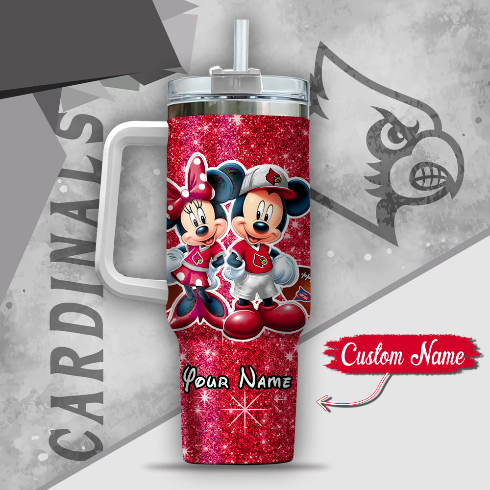 NCAA Louisville Cardinals Mickey And Minnie Couple Custom Stanley Cup 40 oz 30 oz Tumbler With HandleTVC2301134