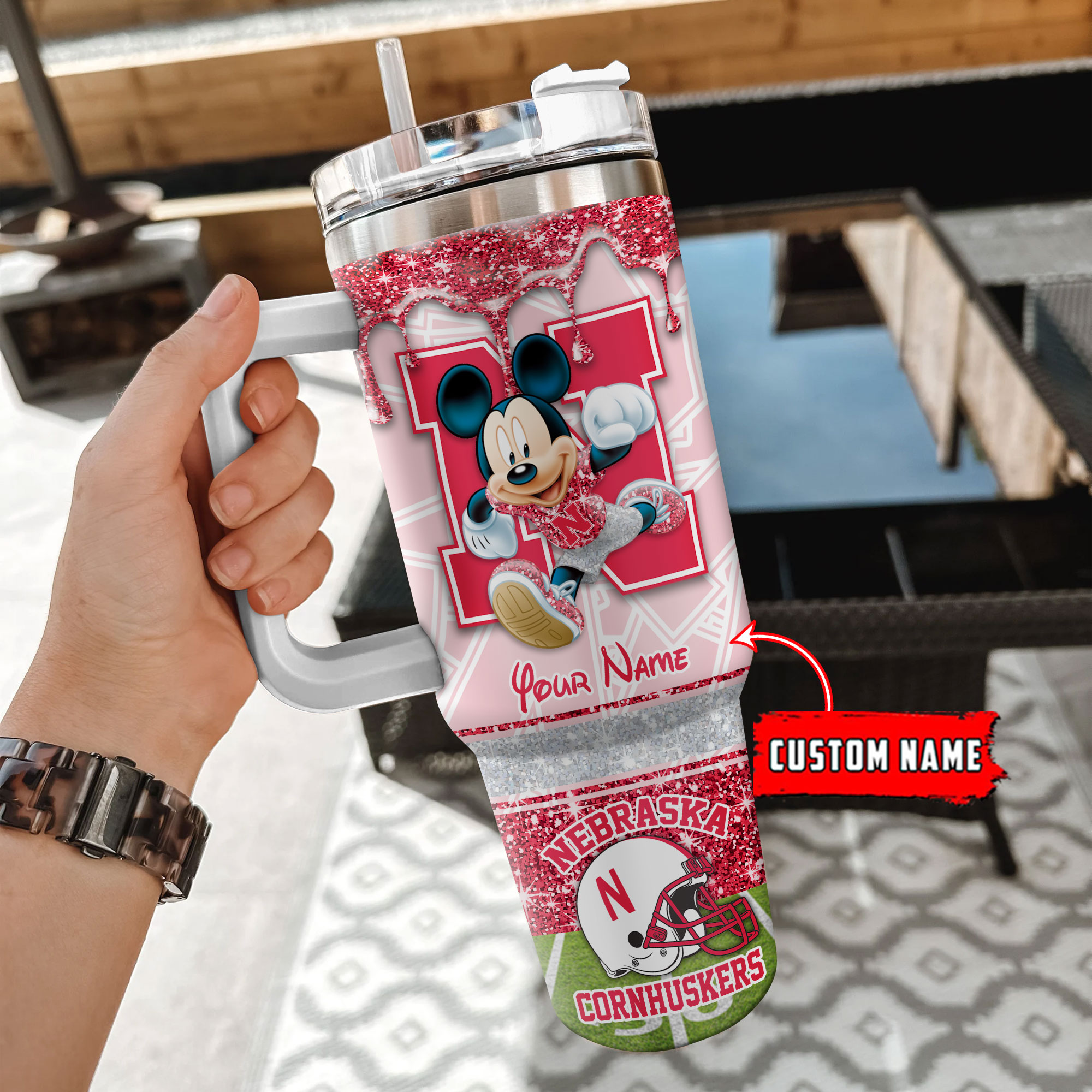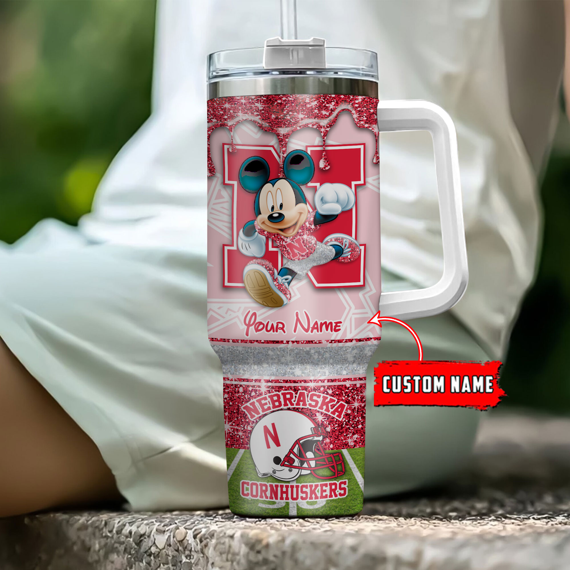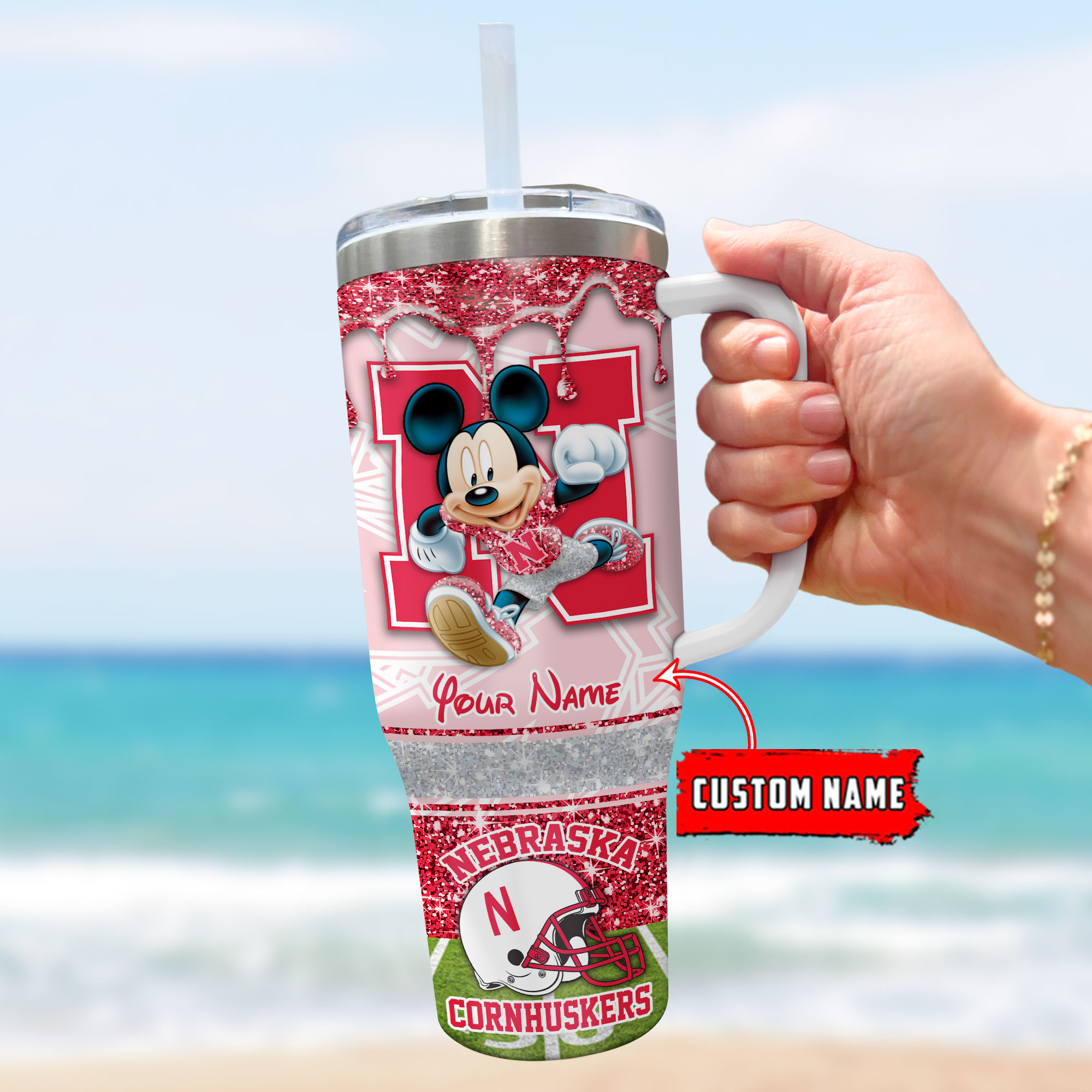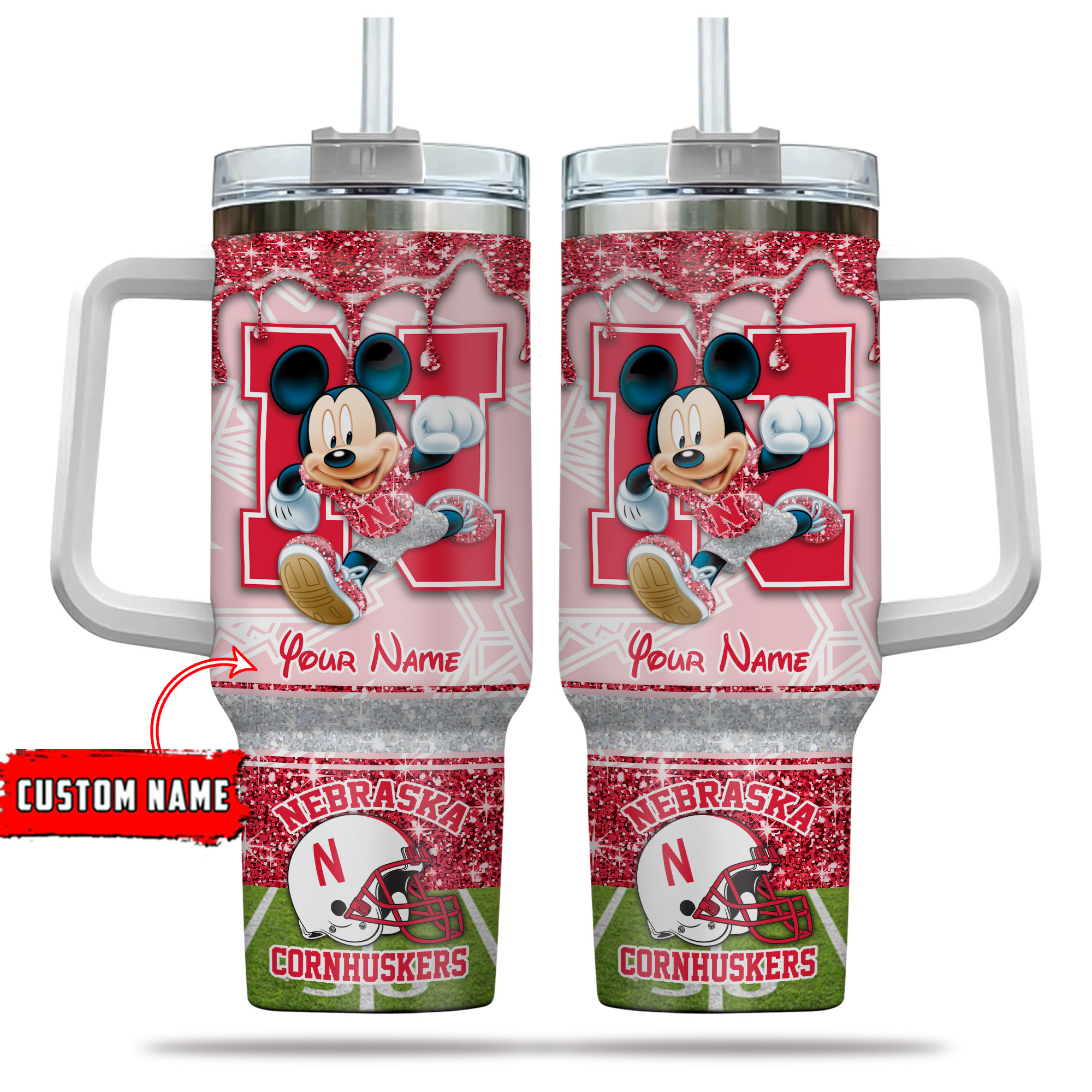 Nebraska Cornhuskers NCAA Mickey Mouse Glitter Custom Stanley Cup 40 oz 30 oz Tumbler With HandleTVC230124