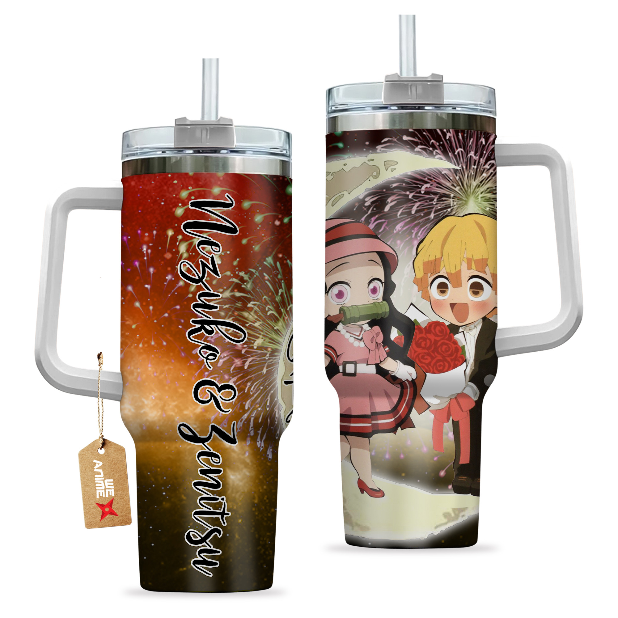 Nezuko Kamado & Zenitsu Demon Slayer Anime Valentine Custom Stanley Cup 40 oz 30 oz Tumbler With HandleTVC2301168