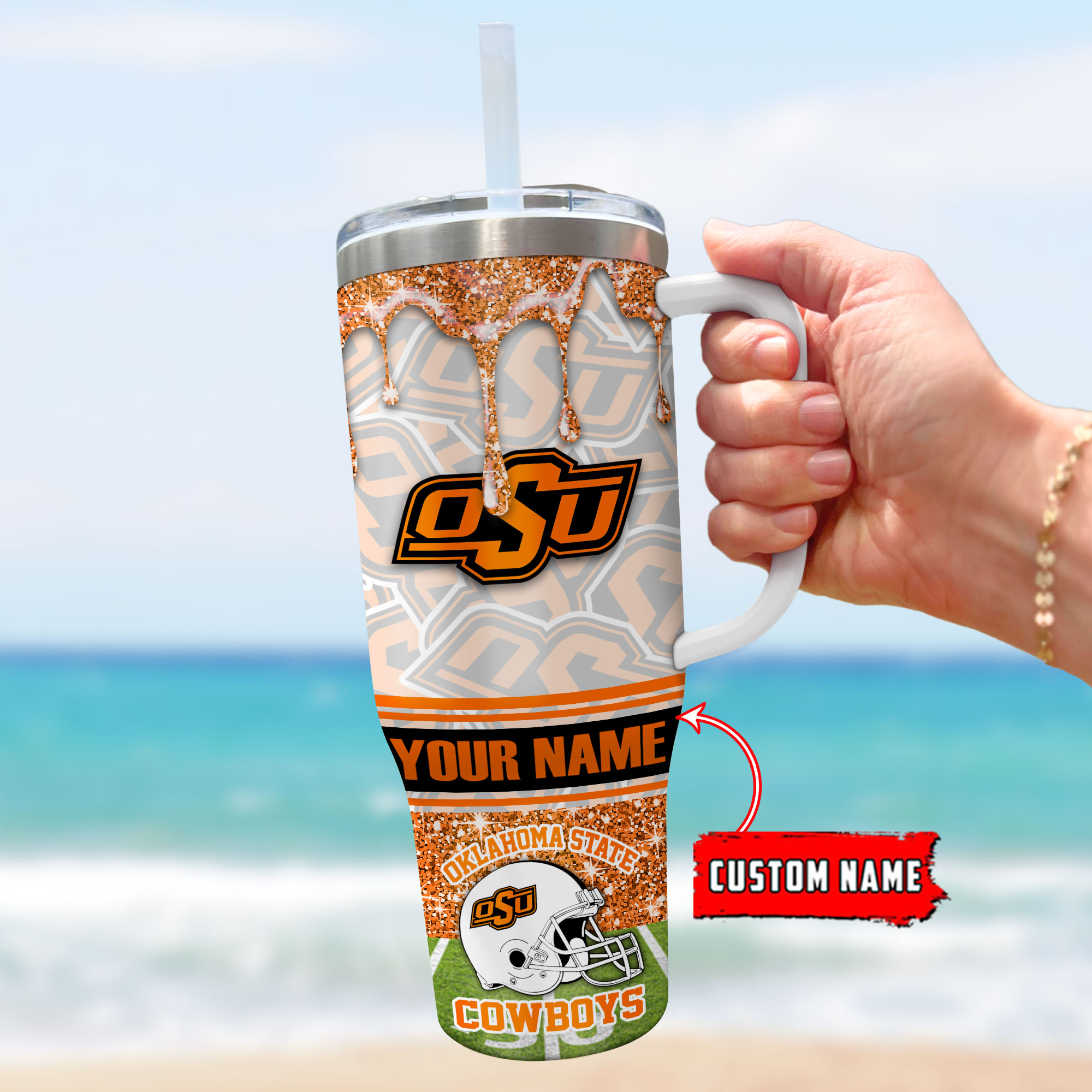 Oklahoma State Cowboys NCAA Glitter Custom Stanley Cup 40 oz 30 oz Tumbler With HandleTVC230117
