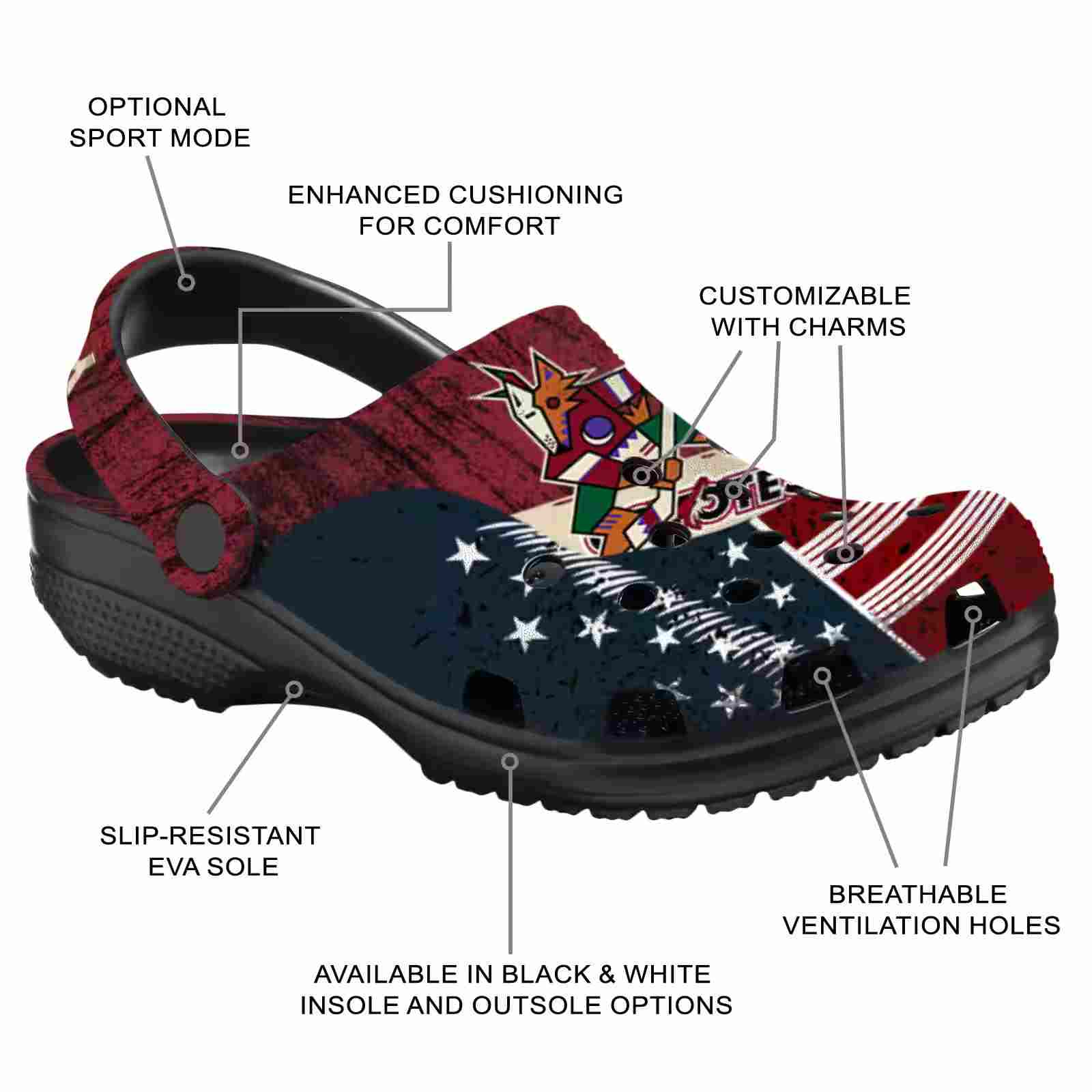 Personalized Arizona Coyotes Star-Spangled Side Pattern ClogTVC1801859