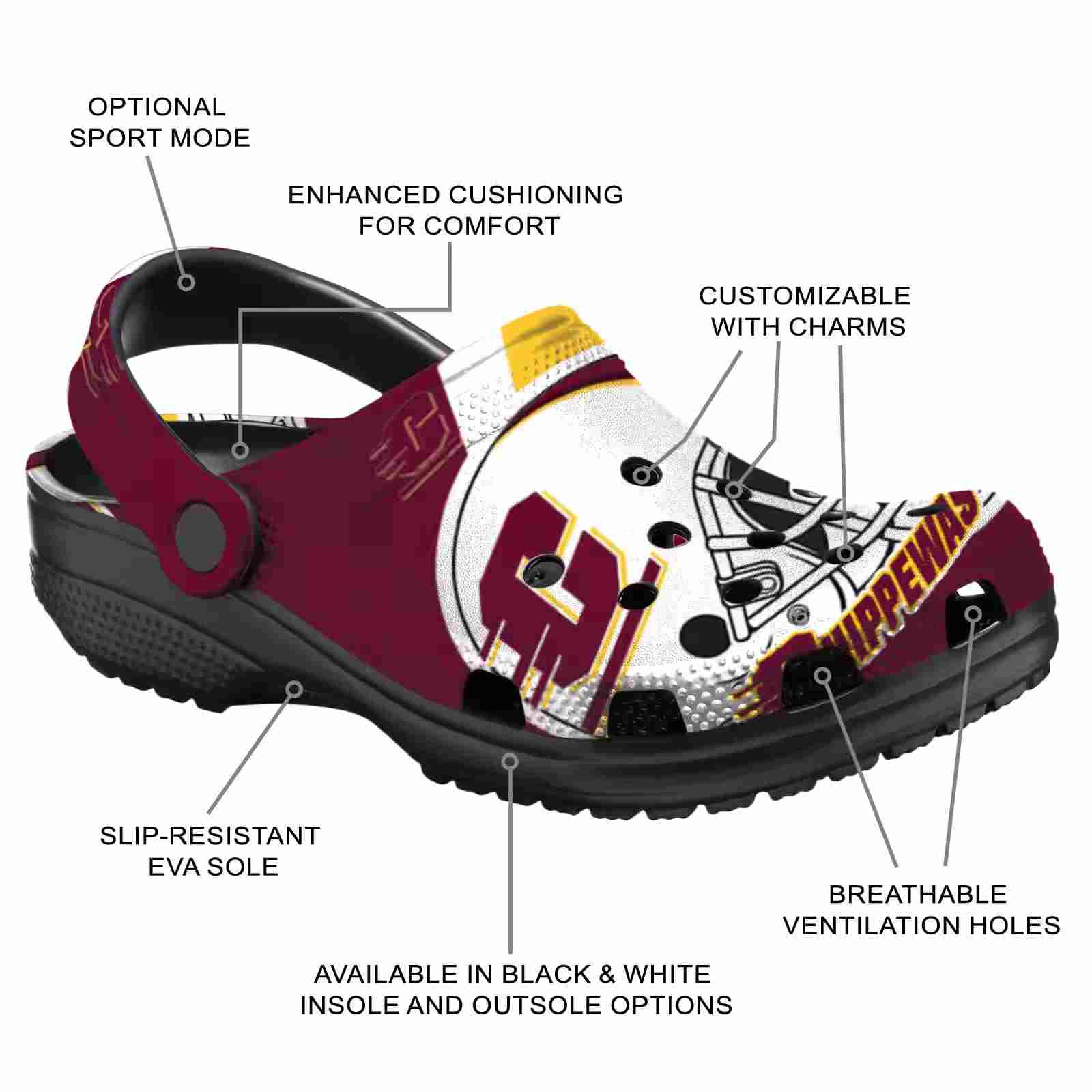 As part of our Central Michigan Chippewas Crocs and NCAA Crocs collections, these unique Clog are designed to let your love for your favorite shine bright.