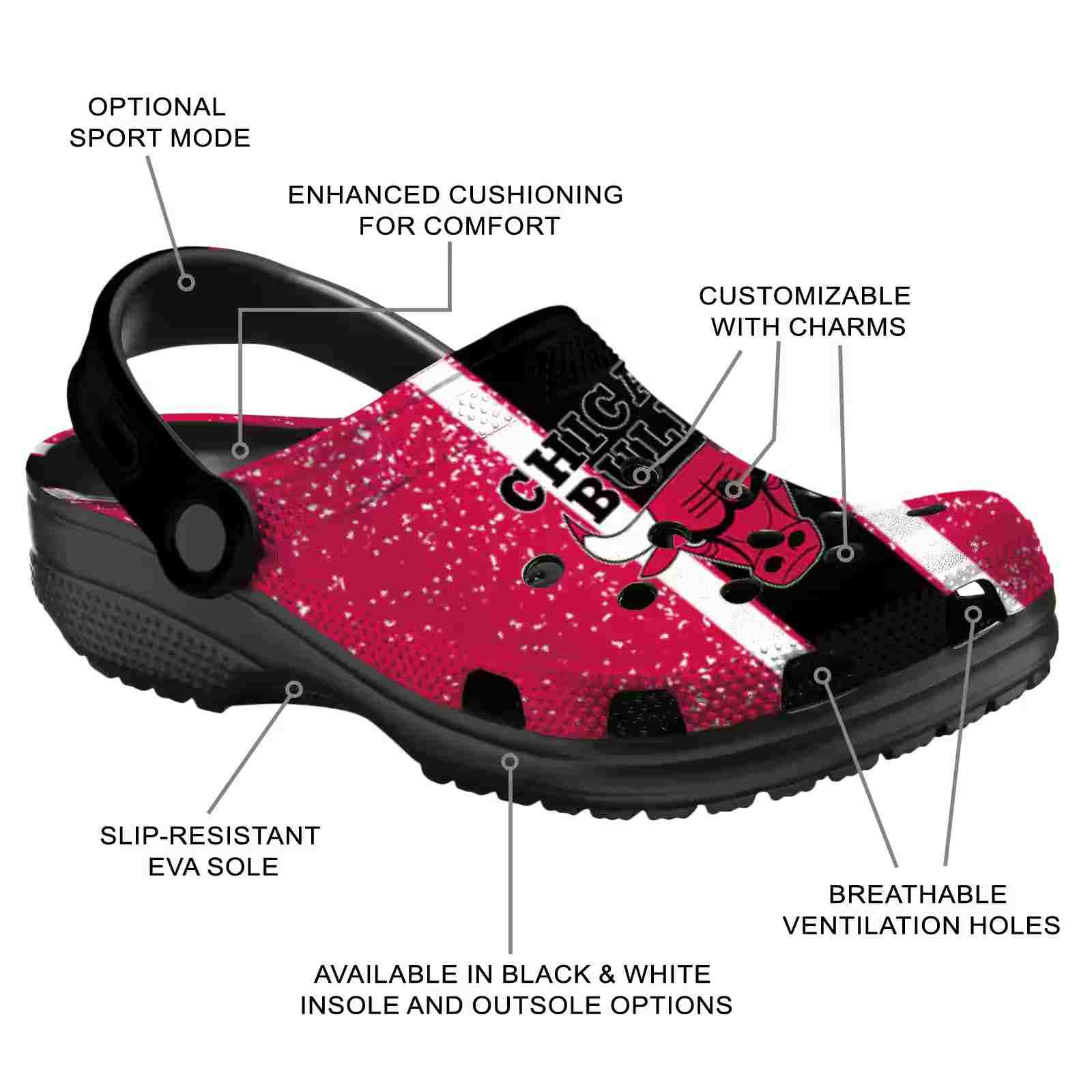 As part of our Chicago Bulls Crocs and NBA Crocs collections, these unique Clog are designed to let your love for your favorite shine bright.