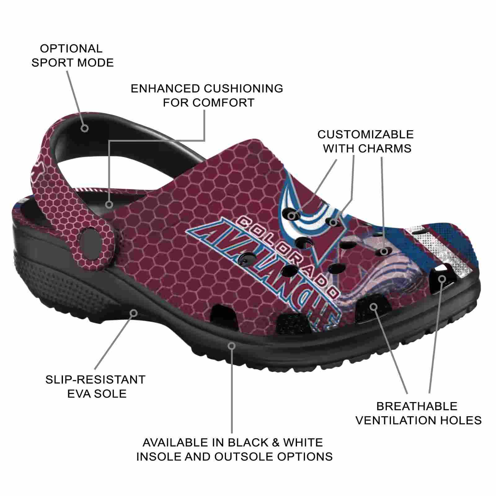 As part of our Colorado Avalanche Crocs and NHL Crocs collections, these unique Clog are designed to let your love for your favorite shine bright.