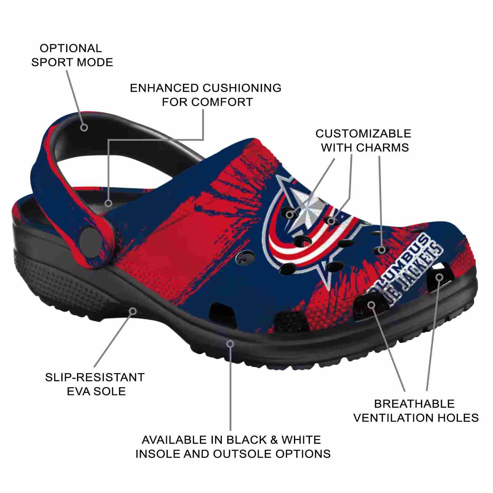 As part of our Columbus Blue Jackets Crocs and NHL Crocs collections, these unique Clog are designed to let your love for your favorite shine bright.