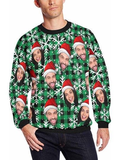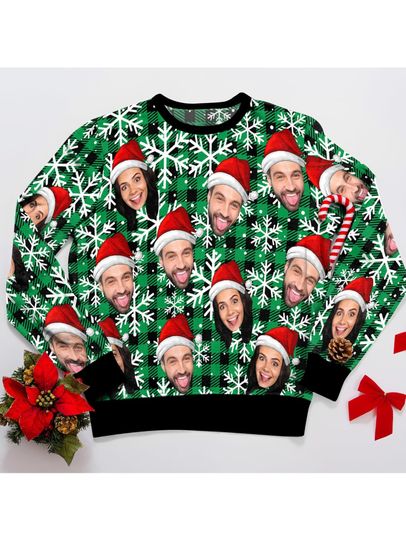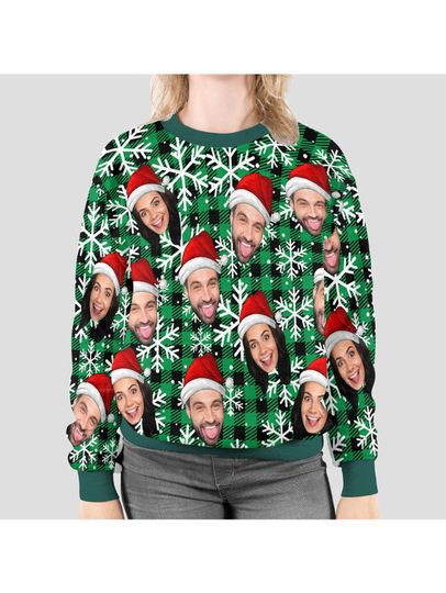 Personalized Custom Face Christmas Sweater – Funny Ugly Holiday Sweatshirt with All-Over Print
