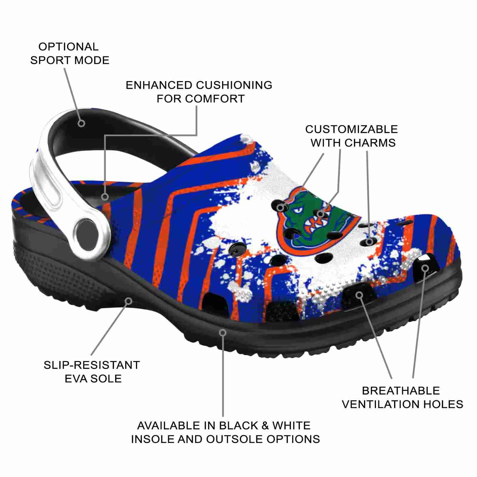 As part of our Florida Gators Crocs and NCAA Crocs collections, these unique Clog are designed to let your love for your favorite shine bright.