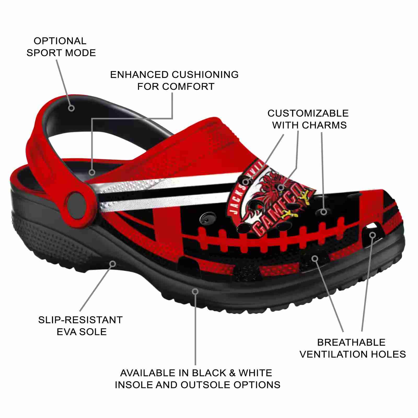 As part of our Jacksonville State Gamecocks Crocs and NCAA Crocs collections, these unique Clog are designed to let your love for your favorite shine bright.