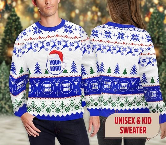 Personalized Logo Ugly Christmas Sweater, Custom Logo Team Sweatshirt
