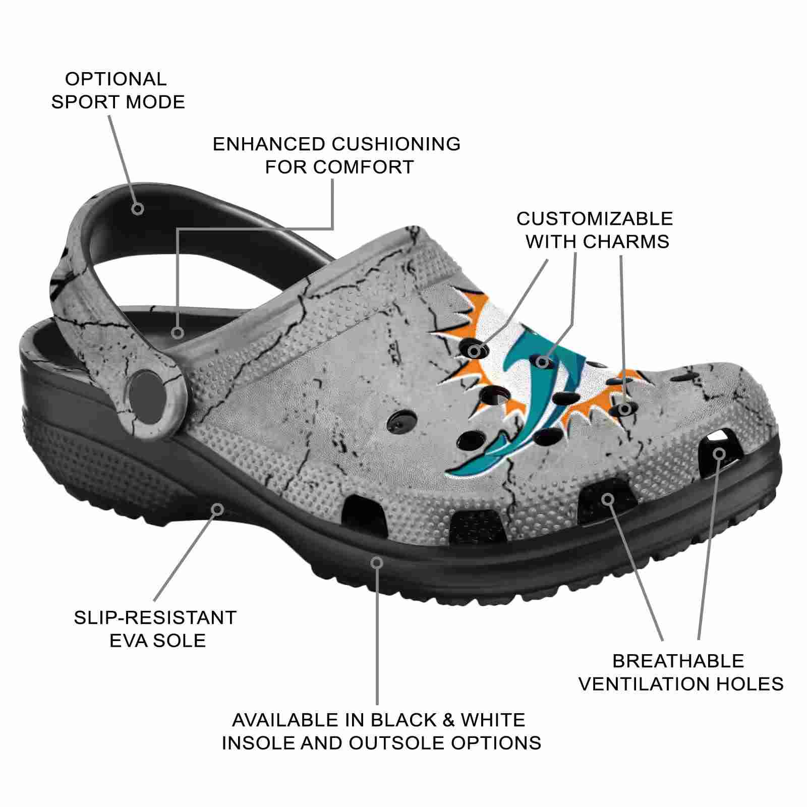 As part of our Miami Dolphins Crocs and NFL Crocs collections, these unique Clog are designed to let your love for your favorite shine bright.