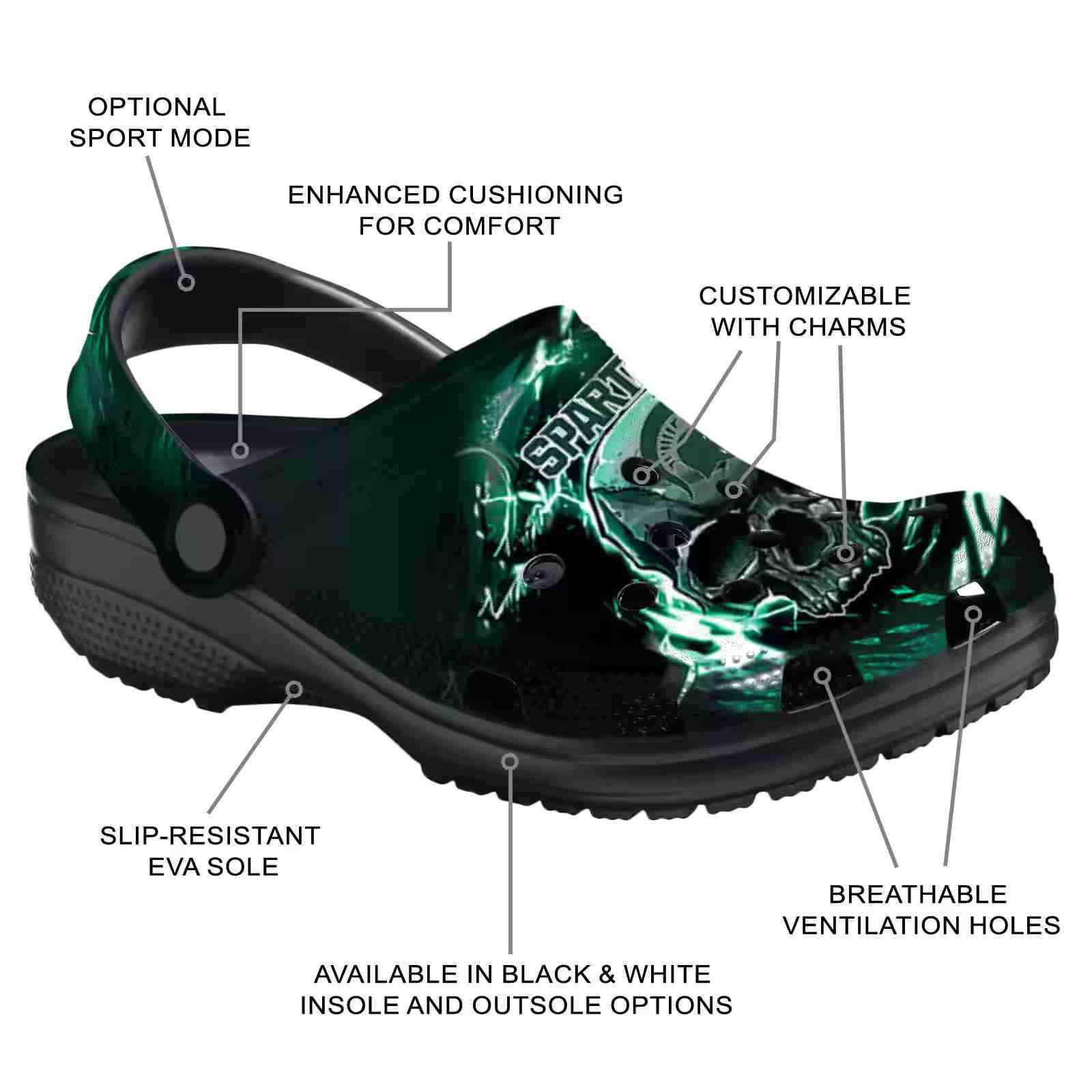 As part of our Michigan State Spartans Crocs and NCAA Crocs collections, these unique Clog are designed to let your love for your favorite shine bright.